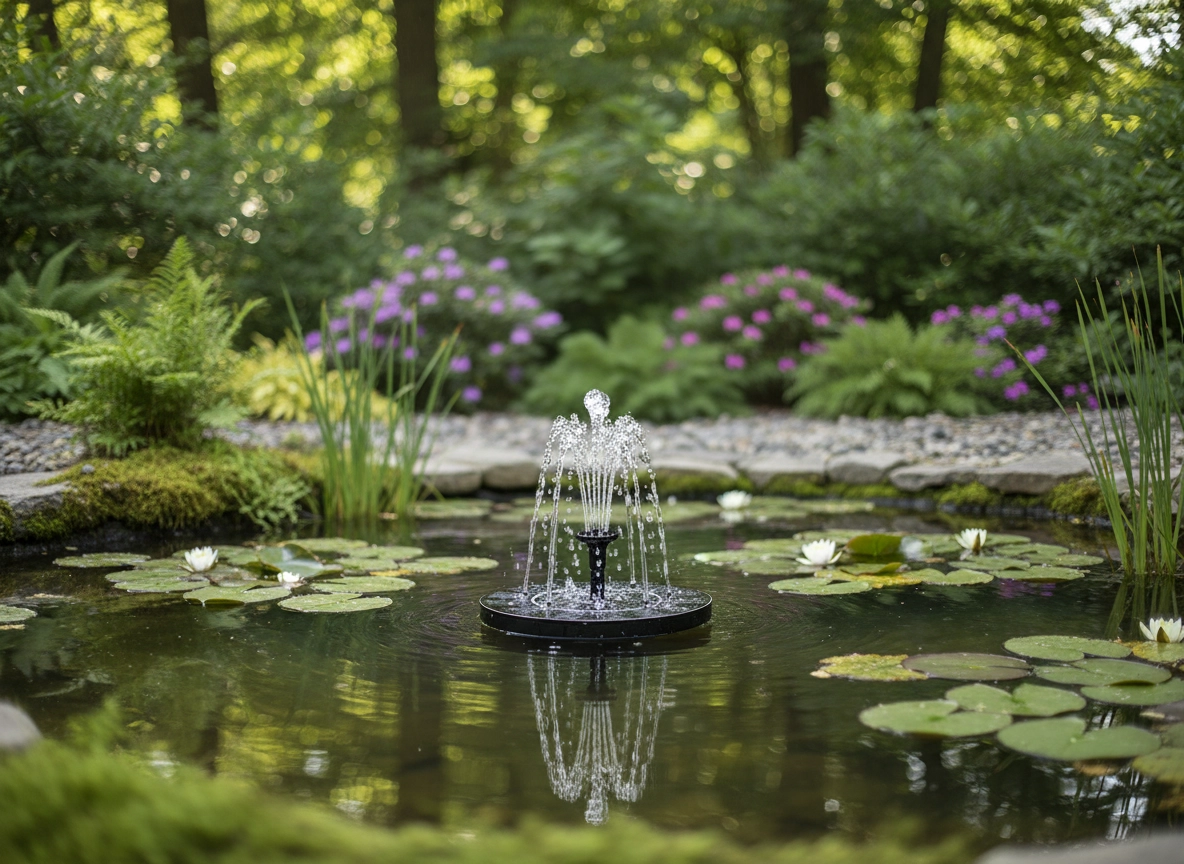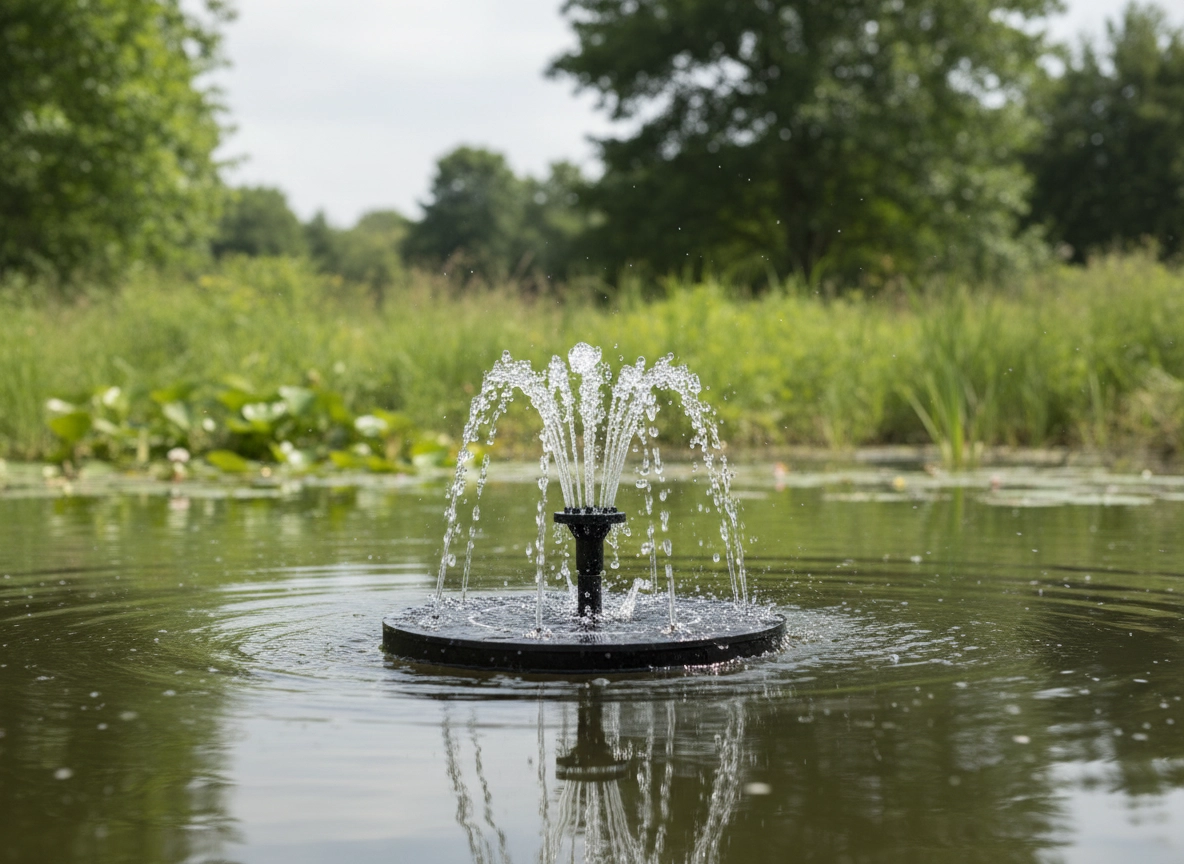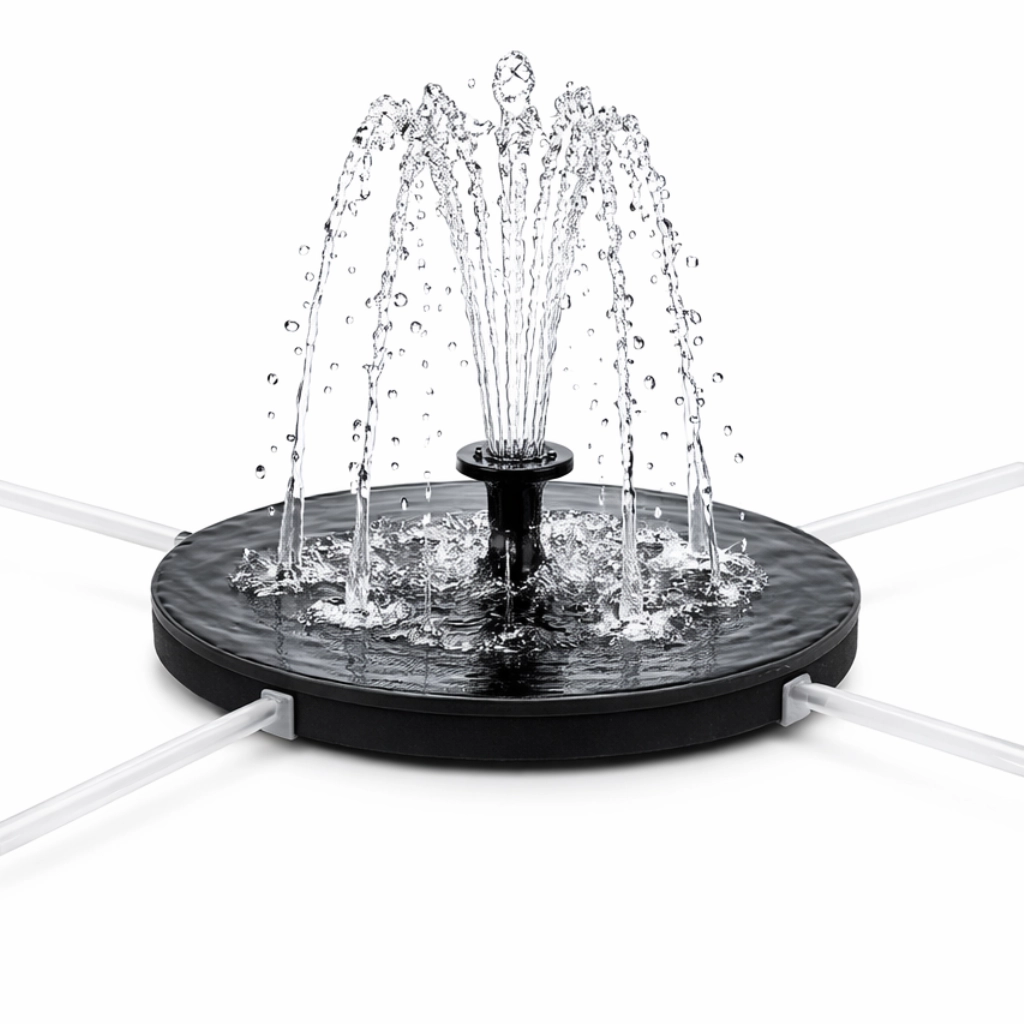 Tato solární fontána začne automaticky pracovat na přímém slunci – stačí ji položit na hladinu. Díky kompaktnímu plovoucímu disku s integrovanými solárními panely získáte okamžitou vodní dekoraci bez instalace a údržby. Zlepší cirkulaci a okysličení vody, čímž podpoří čistší a živější prostředí pro rostliny i ptactvo.