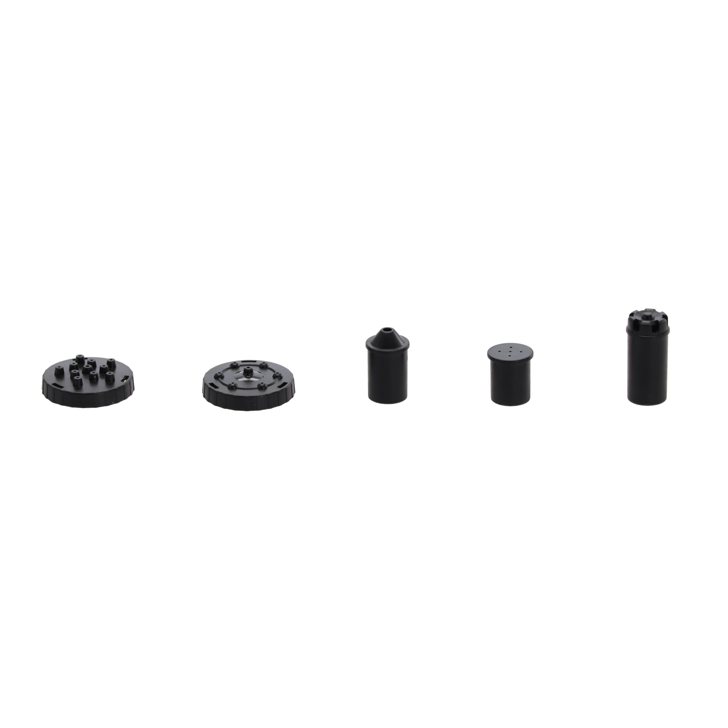 Sada nástavců umožní měnit charakter vodních proudů – od jemného zvonovitého rozstřiku po dynamičtější gejzír.