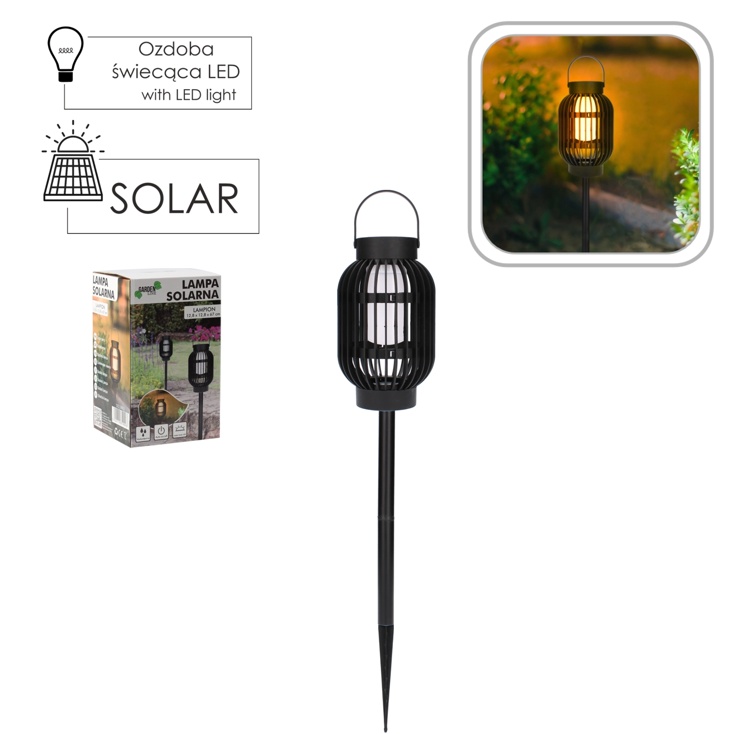 Stylový solární lampion pro zahradu se postará o příjemné osvětlení chodníků, teras i vjezdů bez nutnosti elektrické přípojky. Díky 36 bílým LED, solárnímu napájení a odolnosti IP44 je ideální pro venkovní použití. Automatický provoz s nabíjením přes den a svícením po setmění, snadná instalace pomocí zemního hrotu.