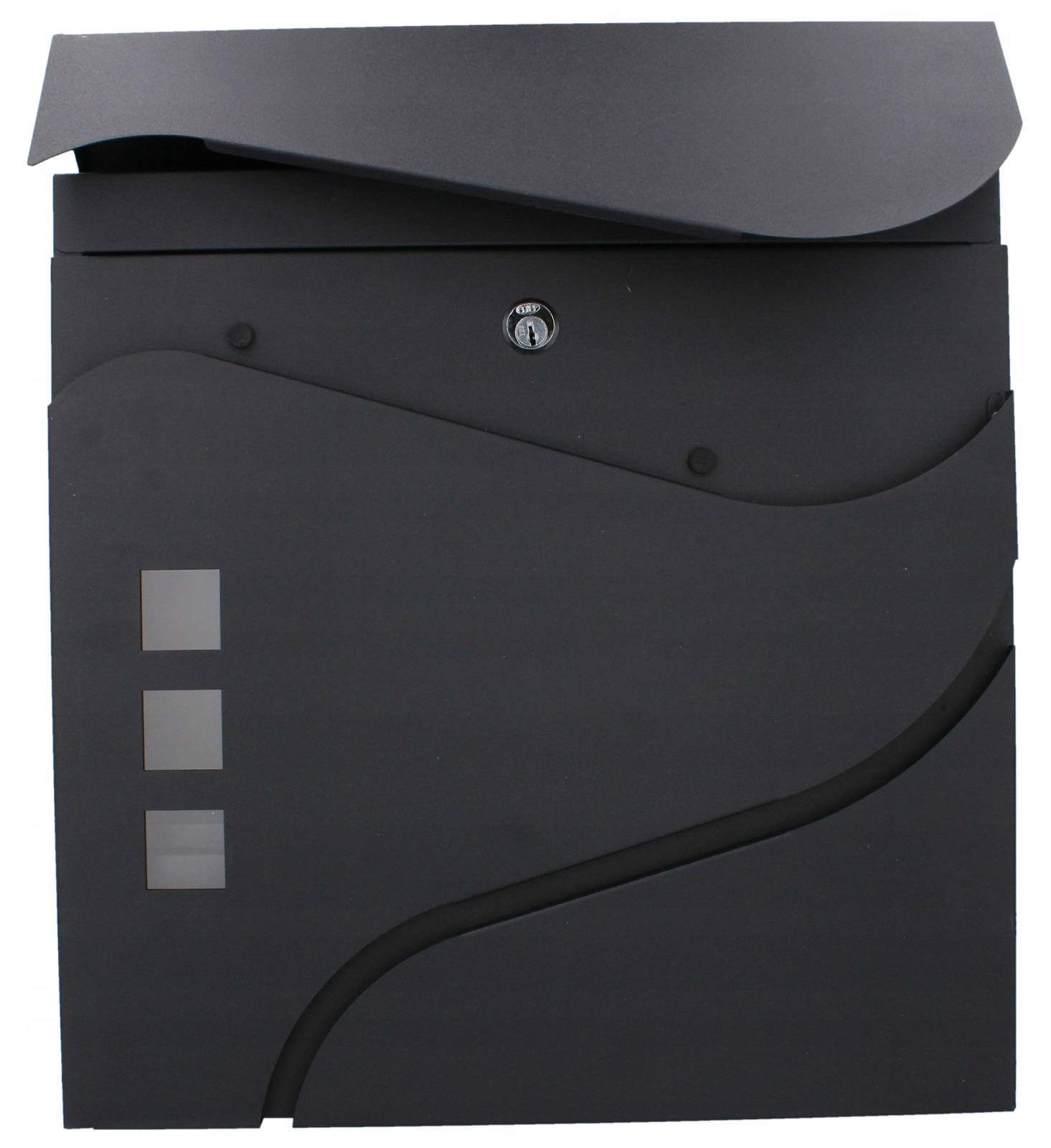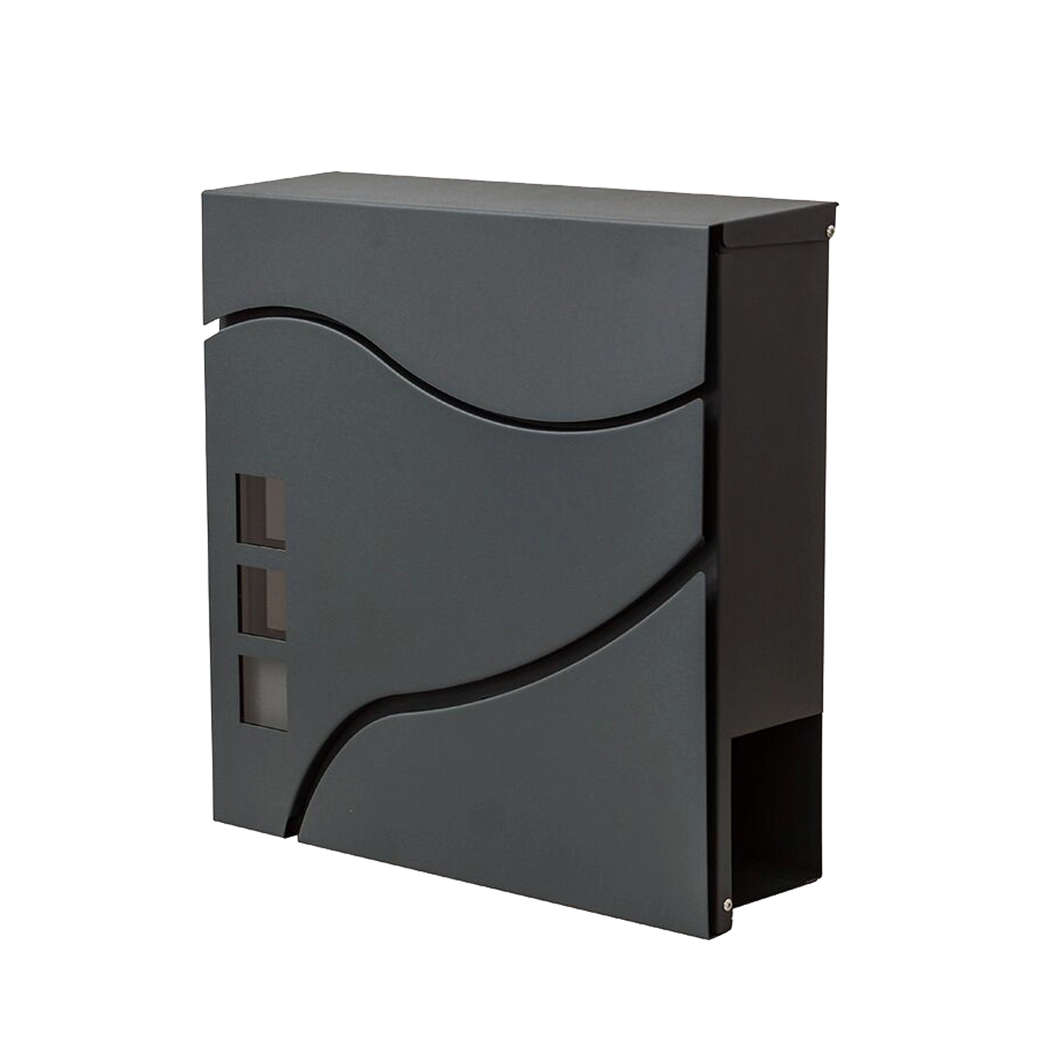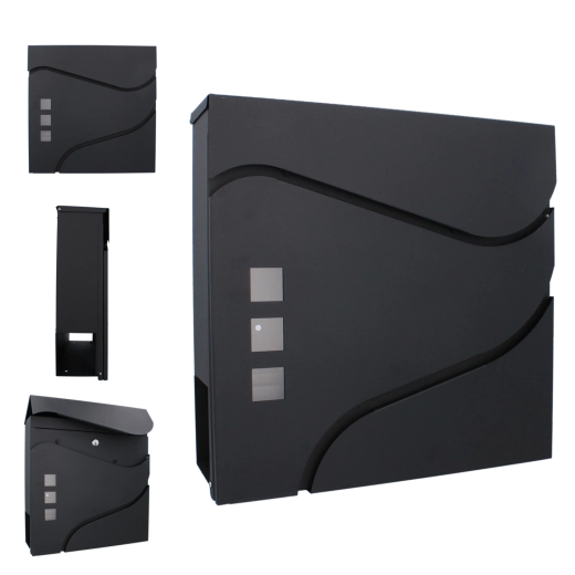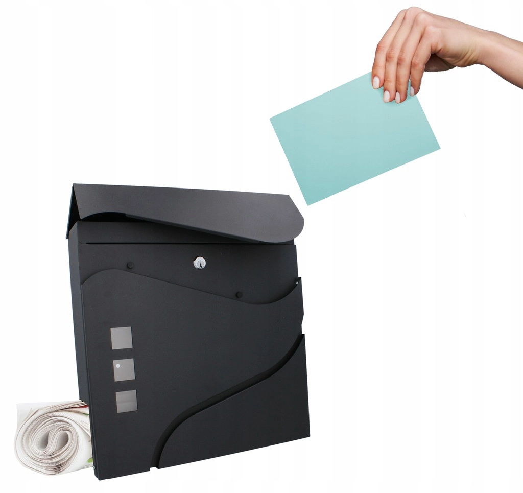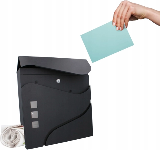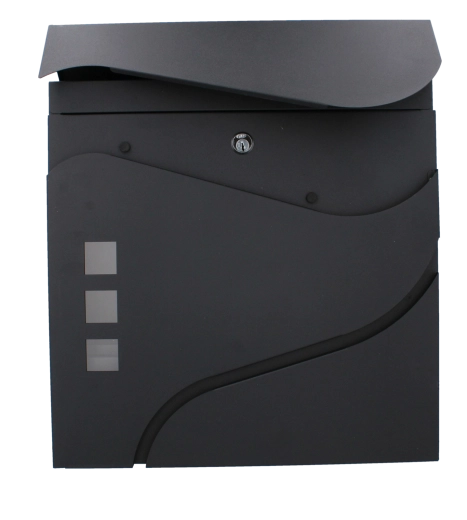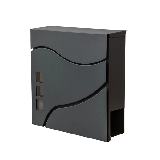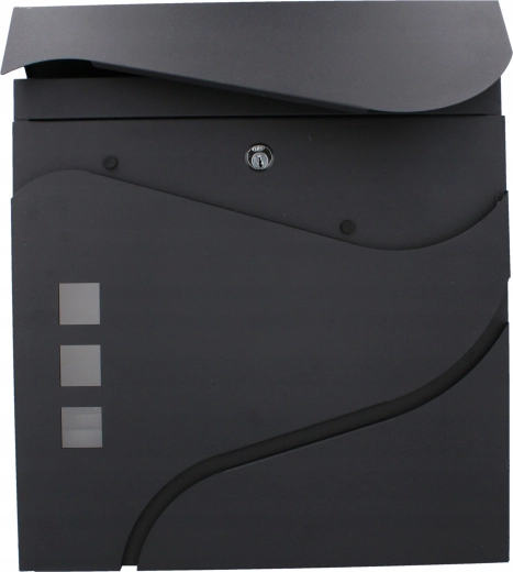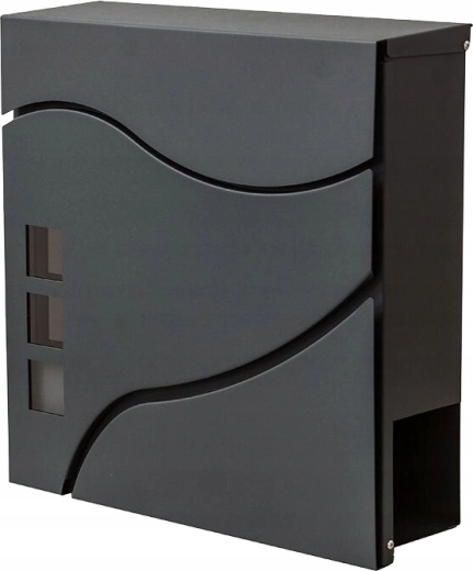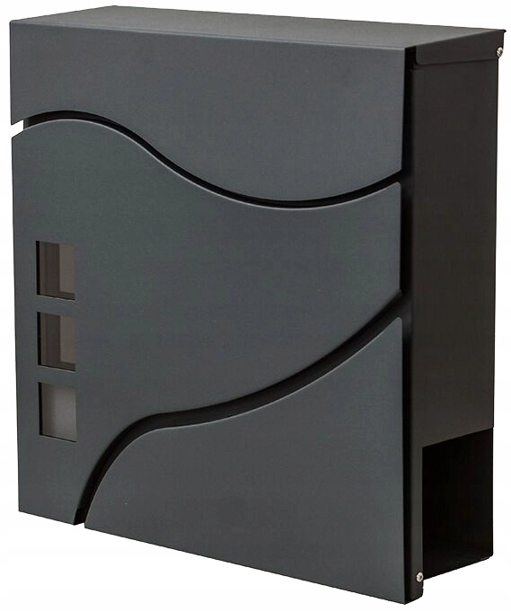 Elegantní minimalistický design s jemnými křivkami a třemi okénky doplní moderní fasády. Praktická boční či spodní novinová přihrádka (dle varianty) umožní oddělené uložení tiskovin. Montáž na zeď je rychlá díky předvrtaným otvorům.