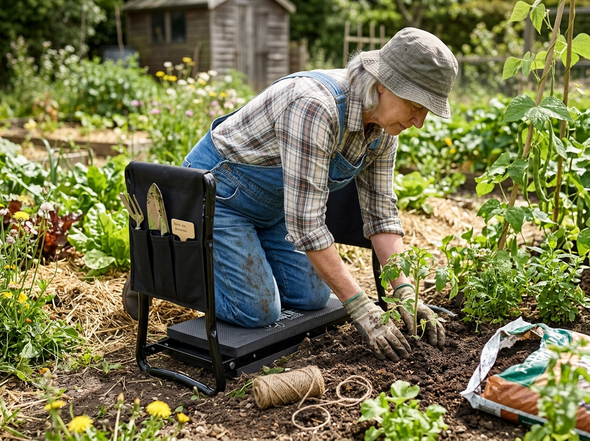 Polstrovaná EVA pěna šetří kolena a pevná madla pomáhají při vstávání. Maximální pohodlí i při delší práci.