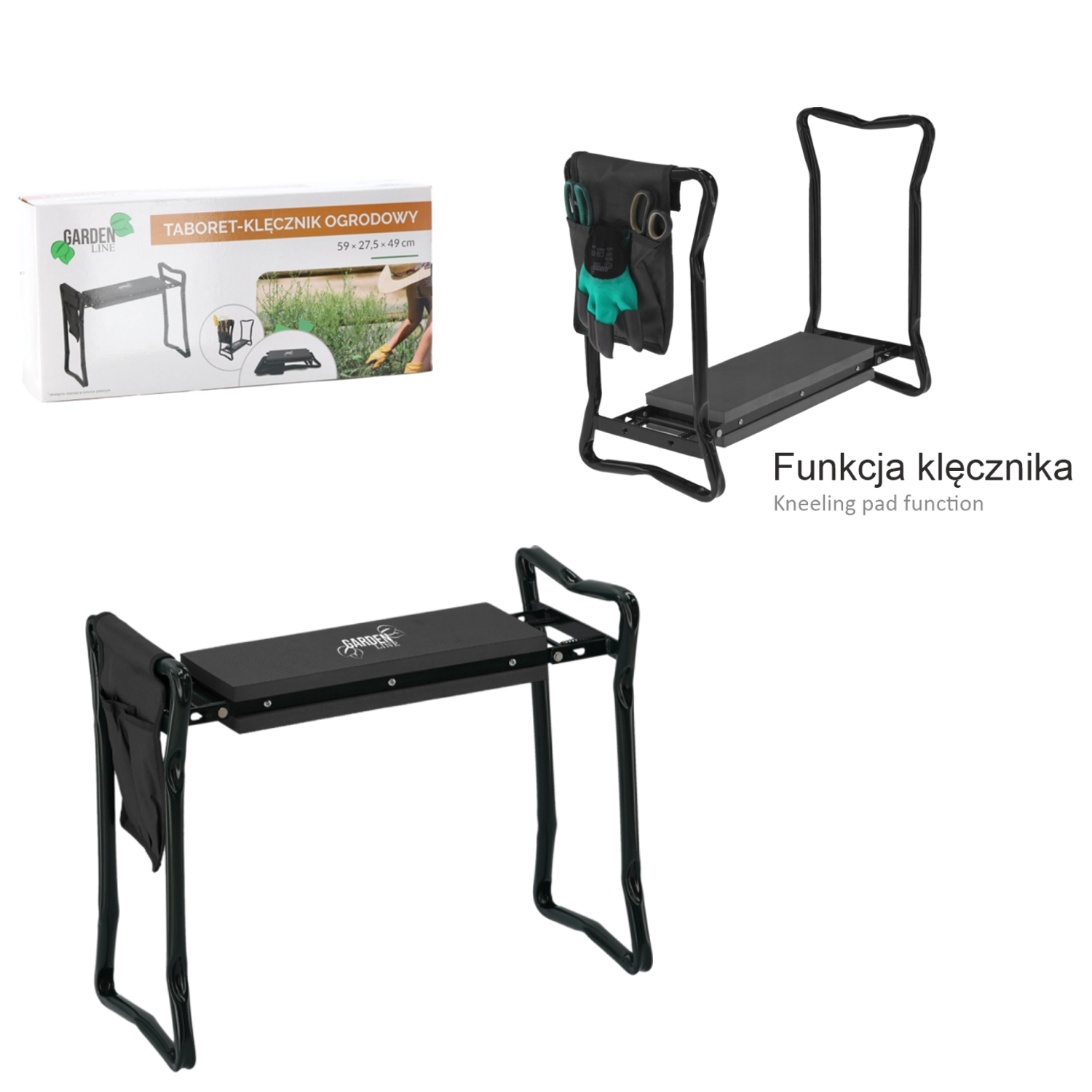 Zahradní klekátko a sedátko GARDENLINE, skládací, černé 59 × 27,5 × 49 cm