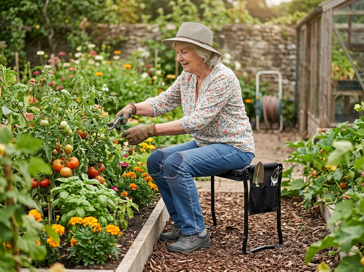 Otočením během vteřiny přepnete mezi měkkým klekátkem a stabilním sedátkem. Ideální pro sázení, pletí i odpočinek.