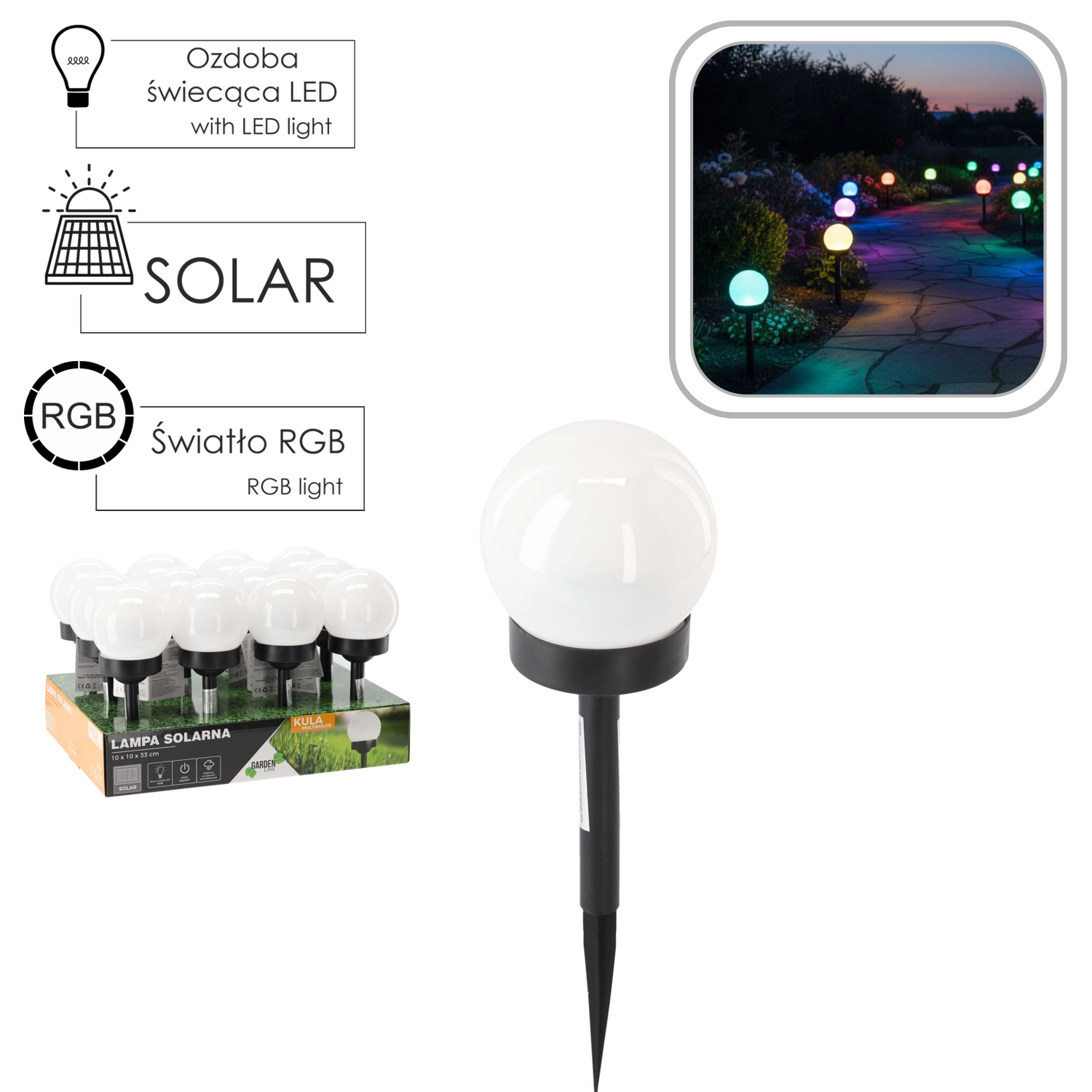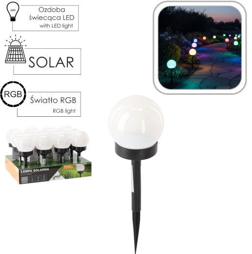 Ozdobte venkovní prostor moderní solární lampou Color Sphere, která vytváří atraktivní barevné osvětlení pomocí RGB LED. Během dne se nabíjí přes amorfně křemíkový solární panel a po setmění automaticky rozsvítí příjemné světlo, které podtrhne architekturu zahrady, vodní prvky i rostlinné kompozice.