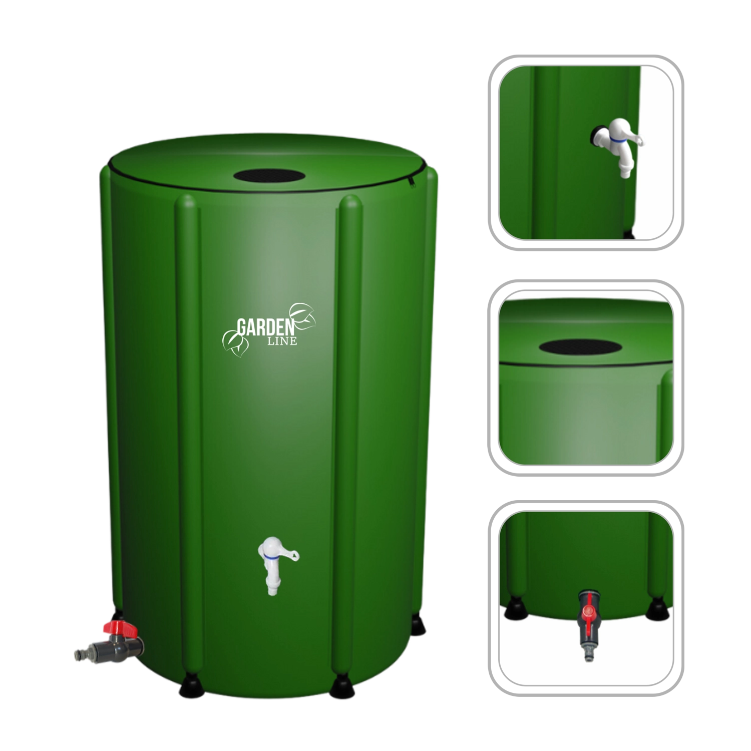 V balení najdete vše pro rychlou instalaci a komfortní obsluhu: kohoutek pro odběr, přepadový ventil, síťové filtry proti nečistotám i flexibilní hadici. Velký objem 500 l pokryje pravidelné zalévání záhonů, skleníku i mytí zahradního náčiní.