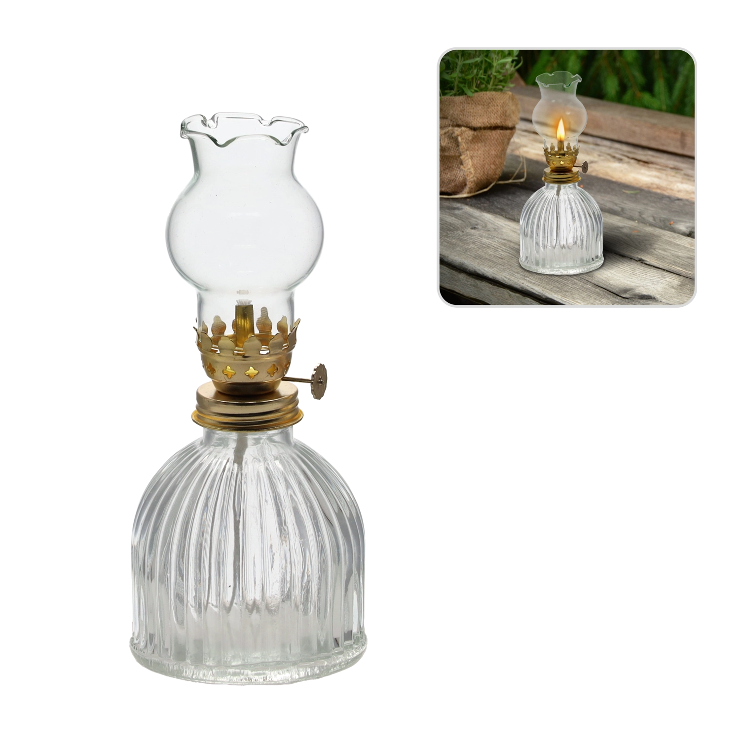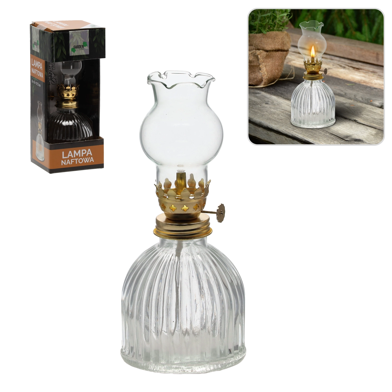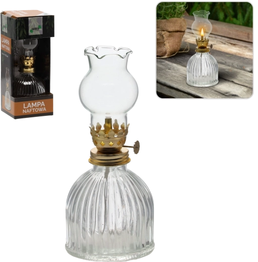 Tato elegantní petrolejová lampa v klasickém provedení se stane ozdobou každé místnosti. Skleněné tělo a bavlněný knot vytvářejí stabilní, příjemně teplý plamen, který navodí útulnou atmosféru doma i venku. Je ideální pro chvíle pohody, romantické večery nebo jako dekorativní doplněk s praktickým využitím.