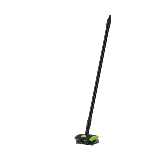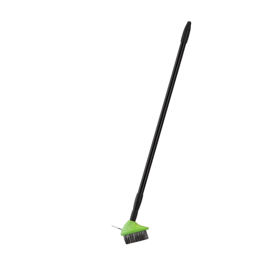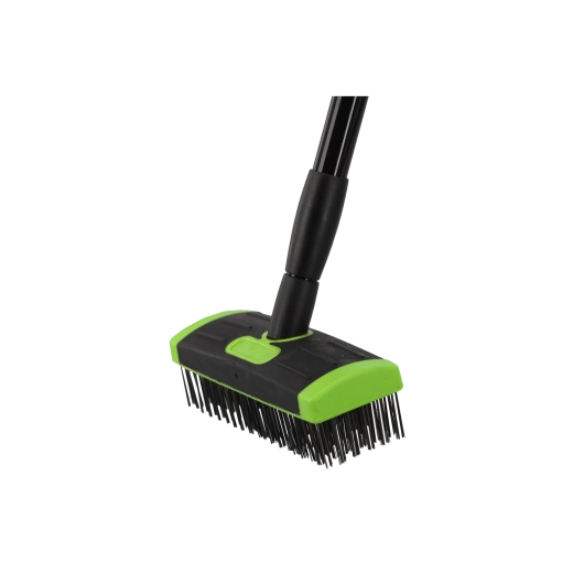 Kovová teleskopická rukojeť s délkou až 140 cm zajišťuje dosah bez zbytečného ohýbání. Čistěte chodníky a terasy ve vzpřímené poloze.