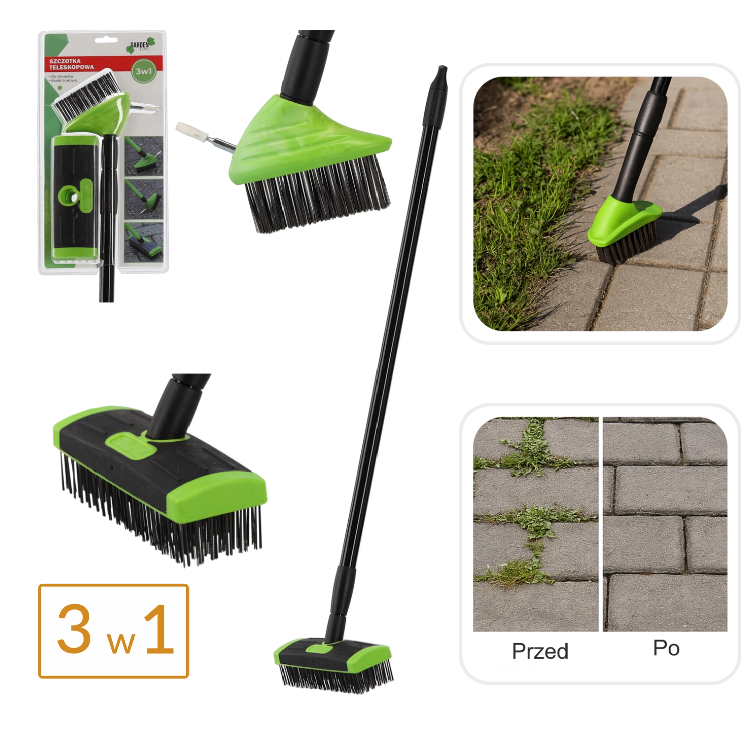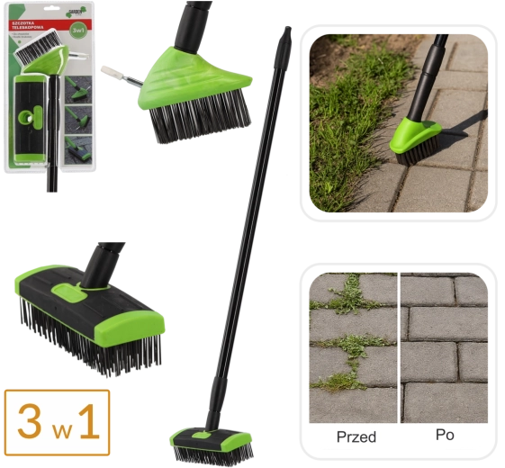 Praktická sada 3v1 kombinuje tři výkonné nástavce pro důkladné čištění exteriérových povrchů. Tuhé drátěné štětiny s mosazným povlakem si poradí s nečistotami, mechem i plevelem bez chemie, zatímco lehká a pevná teleskopická tyč umožní pohodlnou práci ve stoje. Ideální pro zámkovou dlažbu, obrubníky, dvory a terasy.