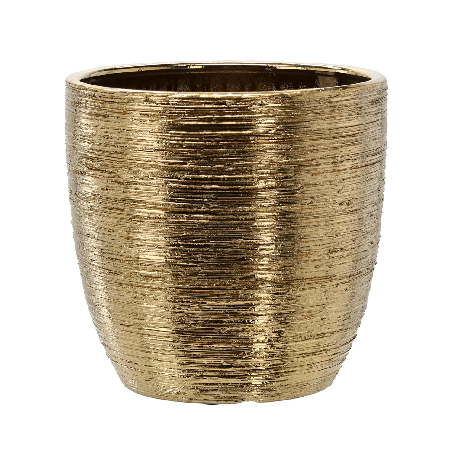 Elegantní keramický obal na květináč v zlaté barvě dodá vašemu interiéru nádech luxusu. Kvalitní keramika zajišťuje dlouhou životnost a odolnost proti poškození, zatímco nadčasový design krásně podtrhne vzhled vašich pokojových rostlin.