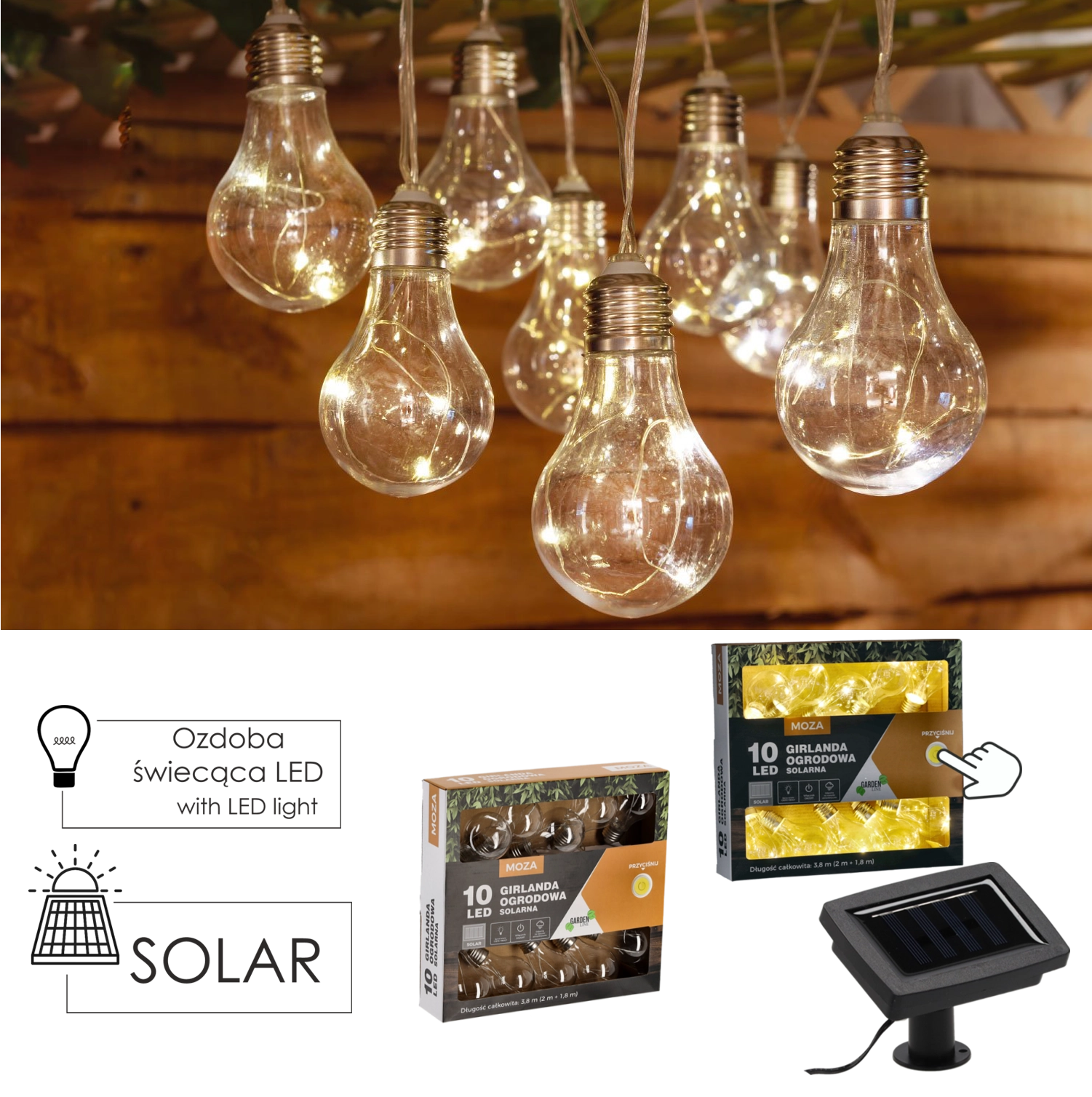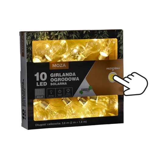 Deset LED s teplým bílým světlem rovnoměrně rozjasní prostor a vytvoří pohodovou, intimní náladu pro posezení i zahradní oslavy.