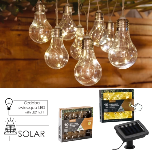 Vestavěný solární panel dobíjí baterii během dne a večer automaticky rozsvítí girlandu. Úsporné řešení bez dodatečných nákladů na elektřinu.