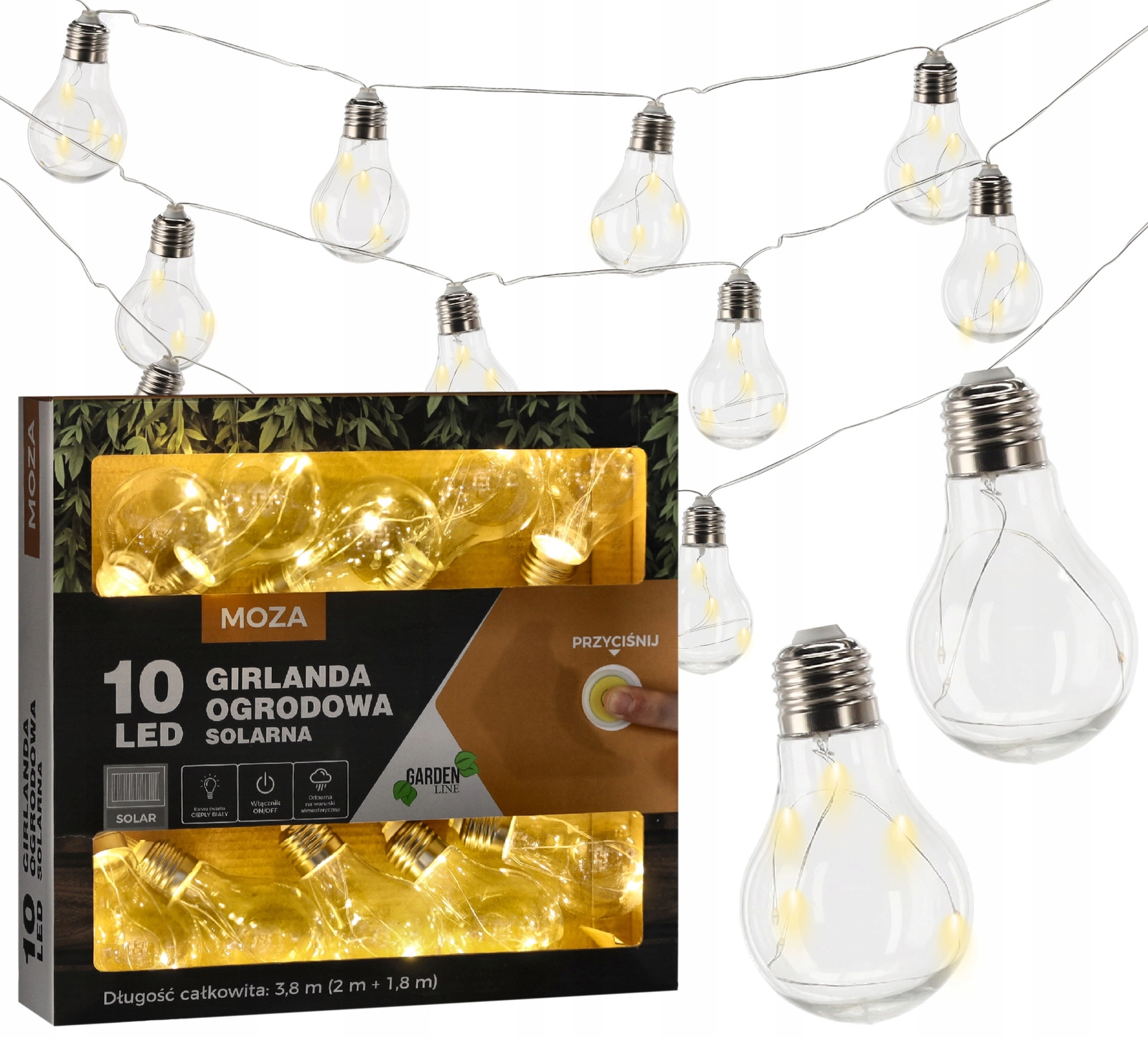 Tato stylová solární světelná girlanda přináší okouzlující teplé bílé světlo do každého venkovního prostoru. Transparentní žárovková stínítka a decentní vodič působí elegantně a hodí se k moderním i klasickým aranžmá. Napájení z integrovaného solárního panelu šetří energii i peněženku.
