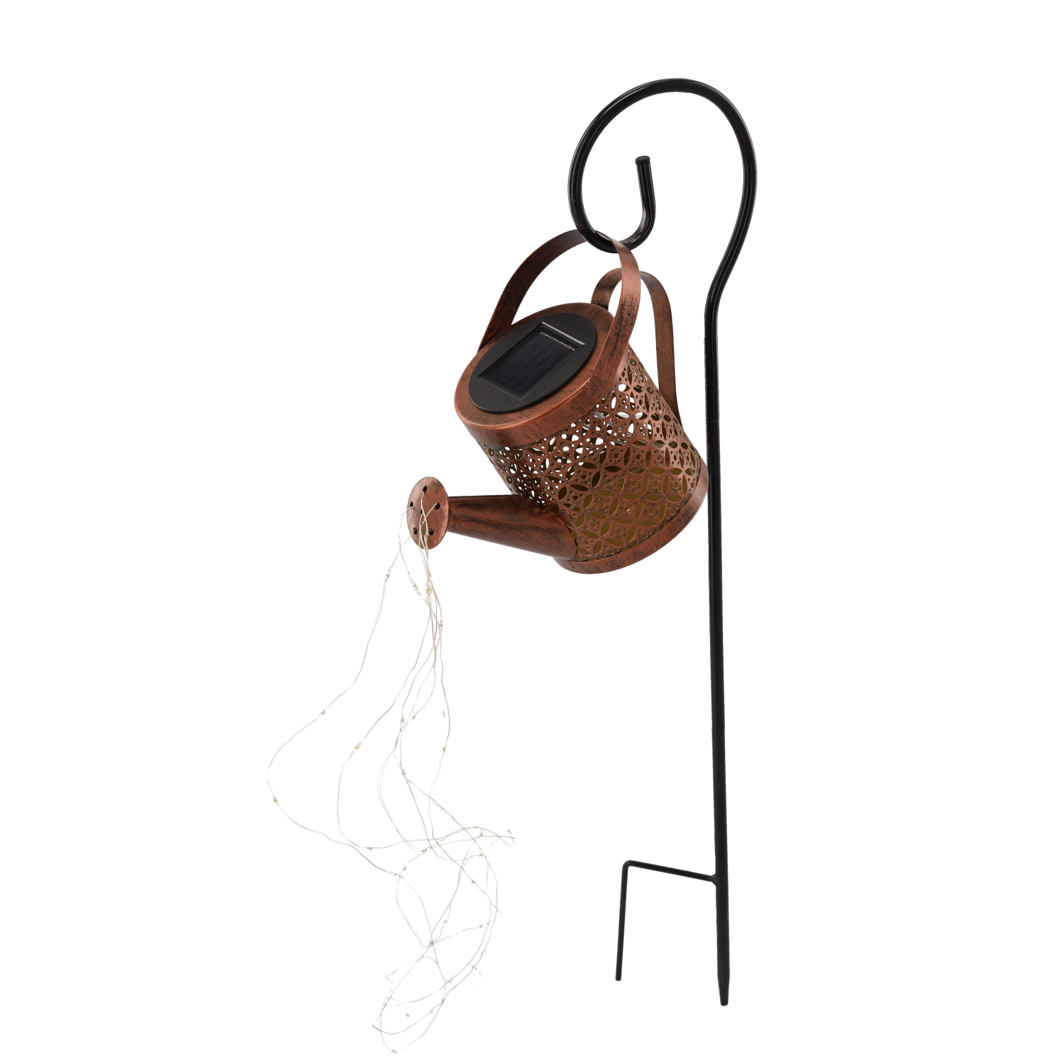 Šest světelných provázků s celkem 37 LED vytváří jemný proud světla připomínající vodu vytékající z konvičky – ideální pro večerní atmosféru na zahradě.