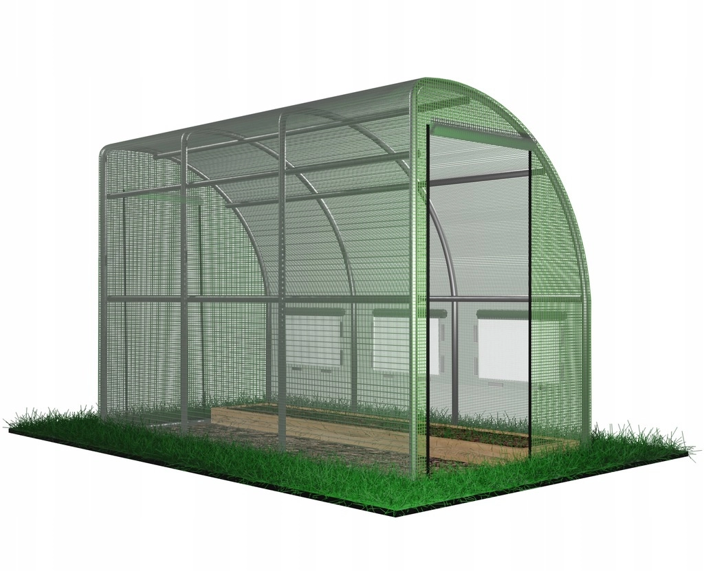 Tři okna se síťkou proti hmyzu zajišťují cirkulaci vzduchu. Široké rolovací dveře na zip umožňují pohodlný vstup a obsluhu záhonů.