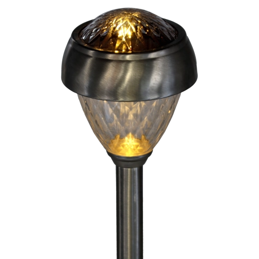 Kombinace nerezové oceli a čirého, fazetového difuzoru vytváří dekorativní světelné efekty a současně zajišťuje odolnost proti počasí. Instalace je otázkou okamžiku – jednoduše zapíchnete pomocí plastového hrotu do země a je hotovo.