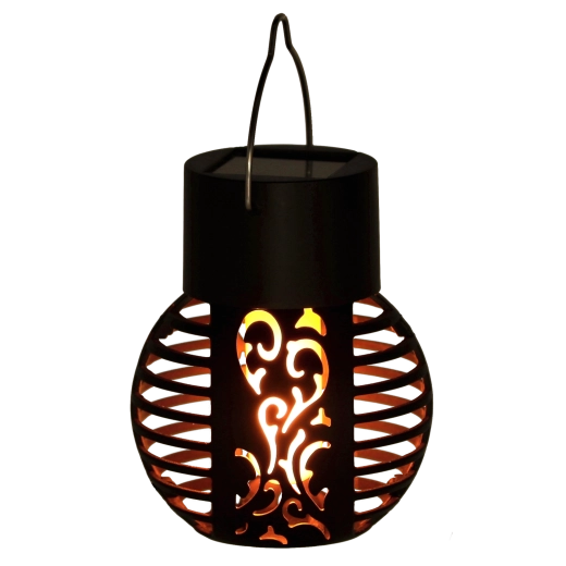 Stylová venkovní lucerna s vyřezávaným dekorem promítá na okolní plochy atraktivní stíny a vytváří útulnou atmosféru po setmění. 6 LED diod s teplým odstínem napodobuje živý plamen bez kouře a rizika otevřeného ohně.