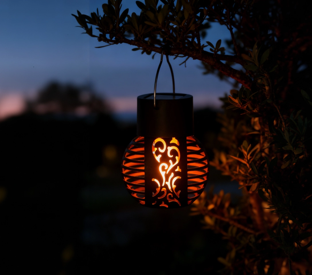Ozdobné perforace vrhají působivé stíny a vytvářejí příjemnou večerní atmosféru na verandě, pergole či zahradní stezce.