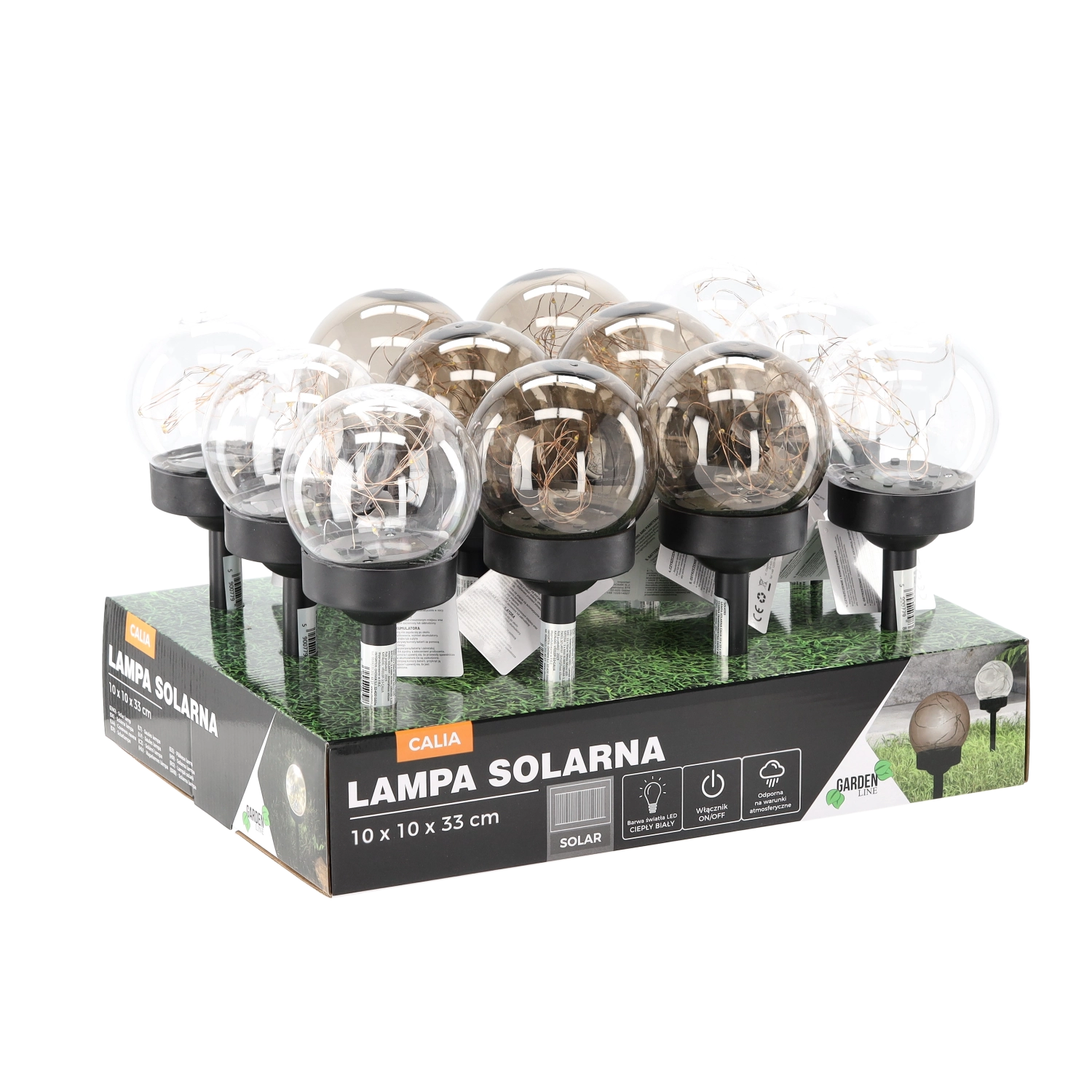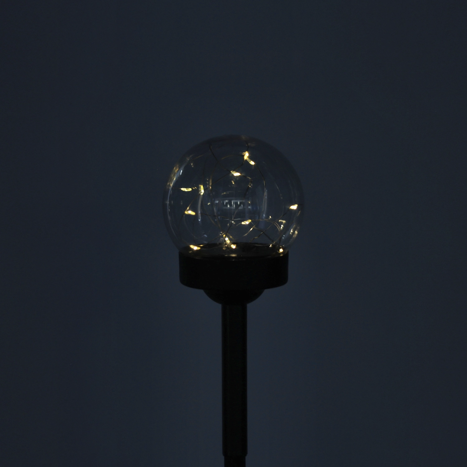 Solární zahradní lampa se skleněnou koulí, teplá bílá, černý kolík