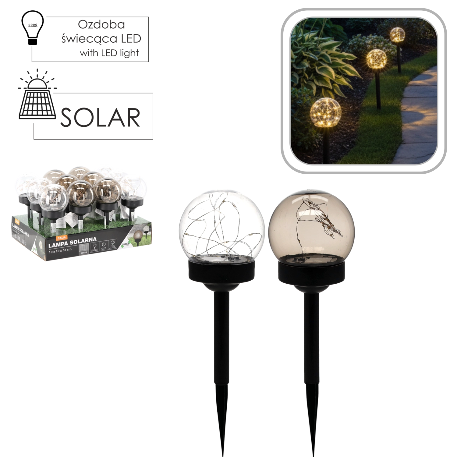 Tato solární LED lampa je ideální volbou pro dekorativní i orientační osvětlení zahrady. Čirý nebo kouřový skleněný glób jemně rozptyluje světlo a vytváří útulnou atmosféru při západu slunce. Díky automatickému nabíjení ze slunce a provozu na dobíjecí baterii nabízí bezúdržbový provoz bez kabelů.