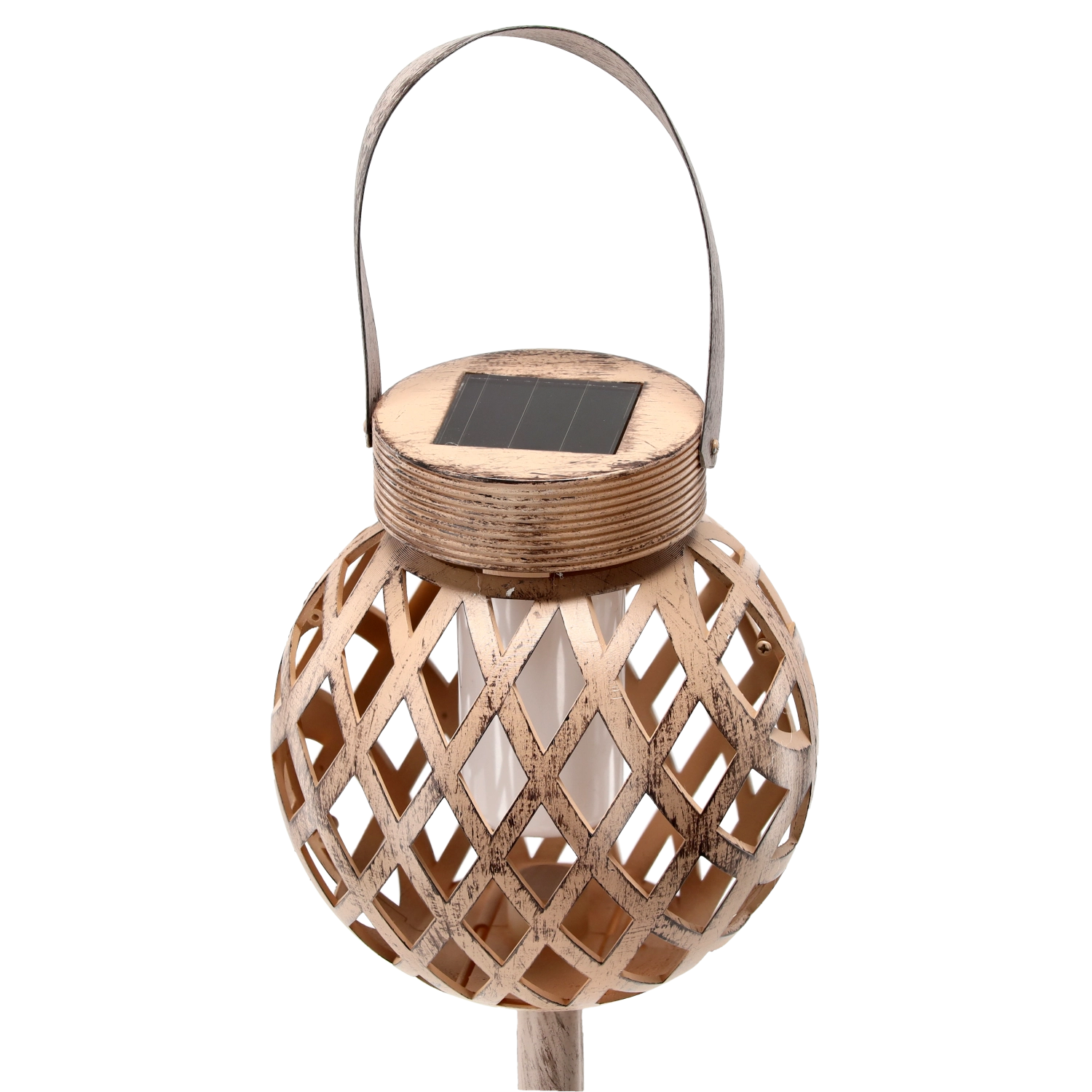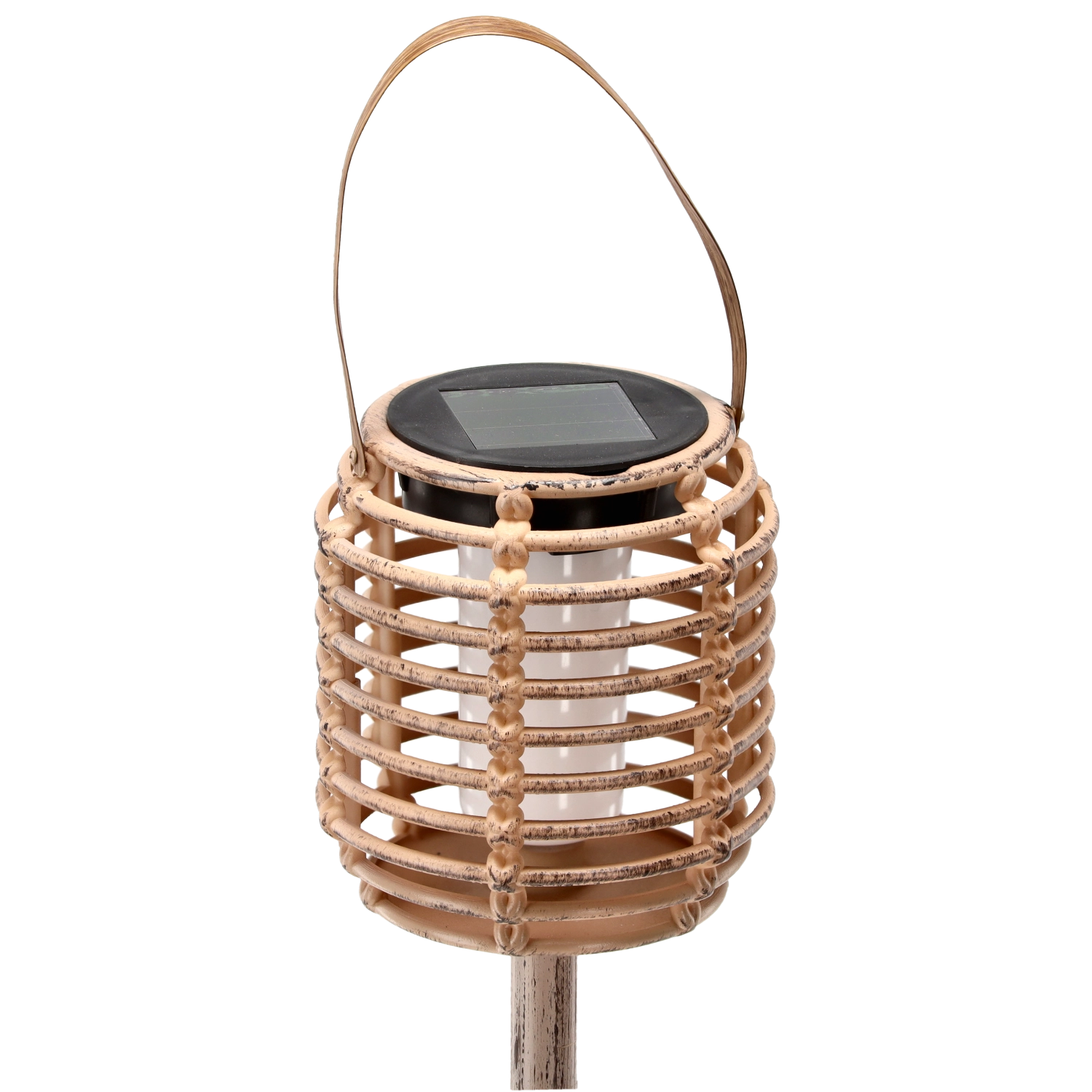 Stylová solární lucerna s výškou 35,5 cm vytvoří ve vaší zahradě útulnou atmosféru. Díky integrovanému solárnímu panelu se přes den nabíjí a večer automaticky svítí teplým bílým světlem s efektem plamene. Je odolná vůči povětrnosti (IP44), vhodná k zapíchnutí do země a ideální podél chodníků, příjezdových cest, teras a verand.
