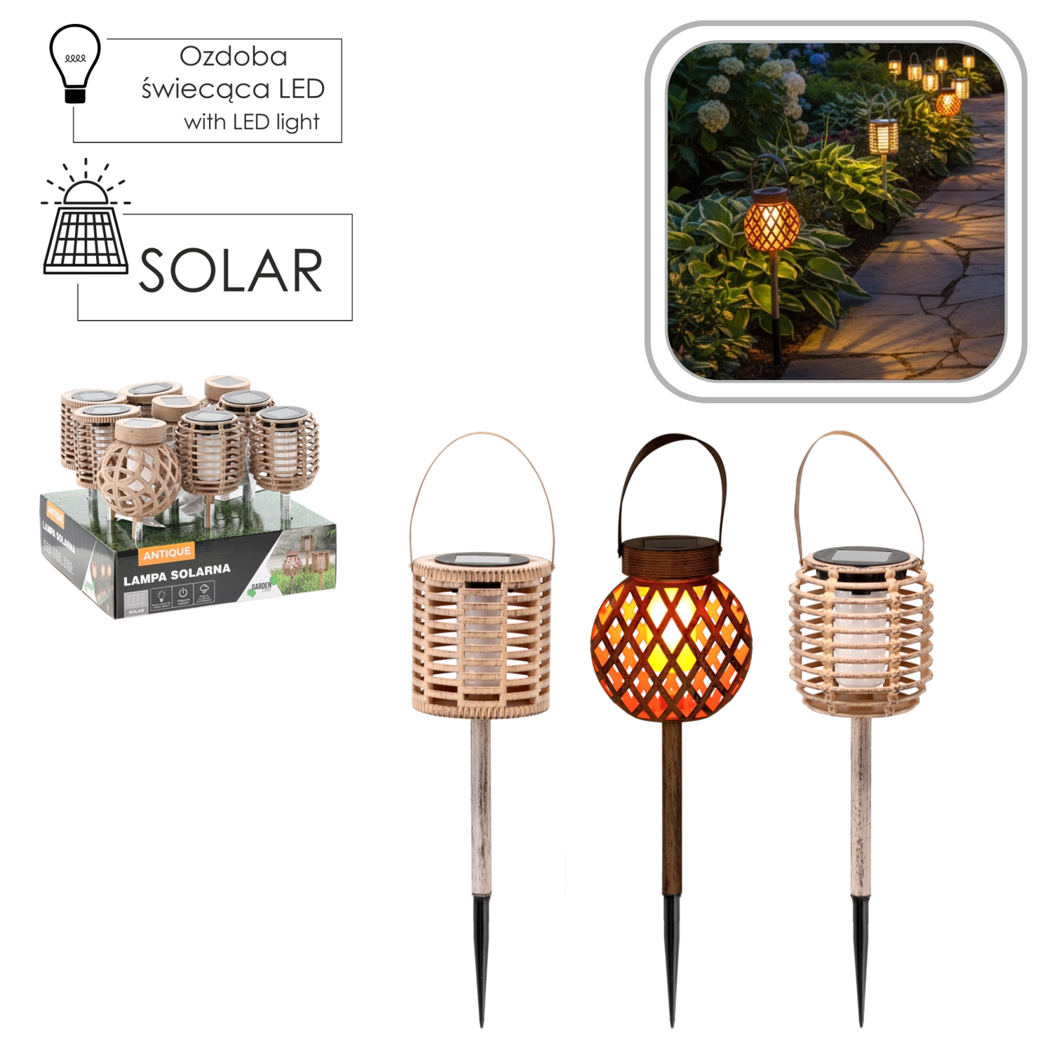 Solární lucerna z řady Garden Line je praktické a dekorativní venkovní osvětlení bez kabelů. Nabíjí se ze slunce a díky výdrži akumulátoru svítí po setmění příjemnou teplou bílou, která připomíná blikot plamene. Antický vzhled a latkový/„ratanový“ efekt dodá zahradě rustikální kouzlo.