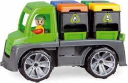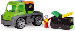 Barevné dětské recyklační auto Lena Truxx z kvalitního plastu s aktívní figurkou a odklopitelnou kabinou. Podporuje výuku o recyklaci s plně funkčními kontejnery.