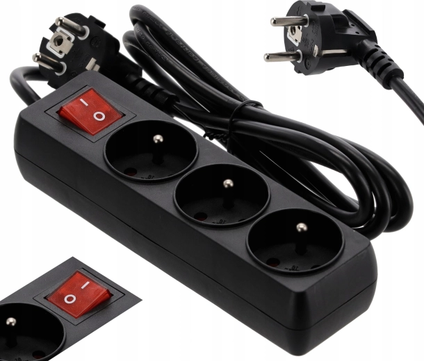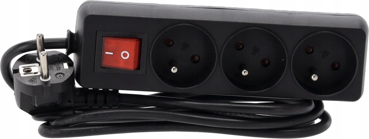 - Praktické ovládání: hlavní spínač vypne/zapne všechny tři zásuvky najednou.