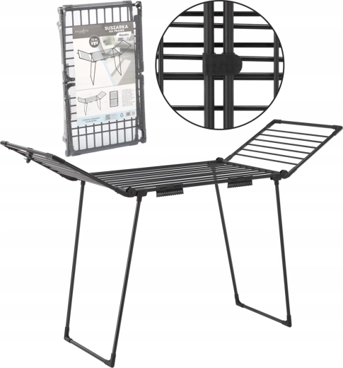 Praktické držáky na ponožky udrží drobné kusy prádla přehledně na místě – už žádné ztracené páry. Díky skládací konstrukci sušák snadno uložíte i v menších prostorech. Využijete jej na běžné prádlo, ručníky i jemné tkaniny.