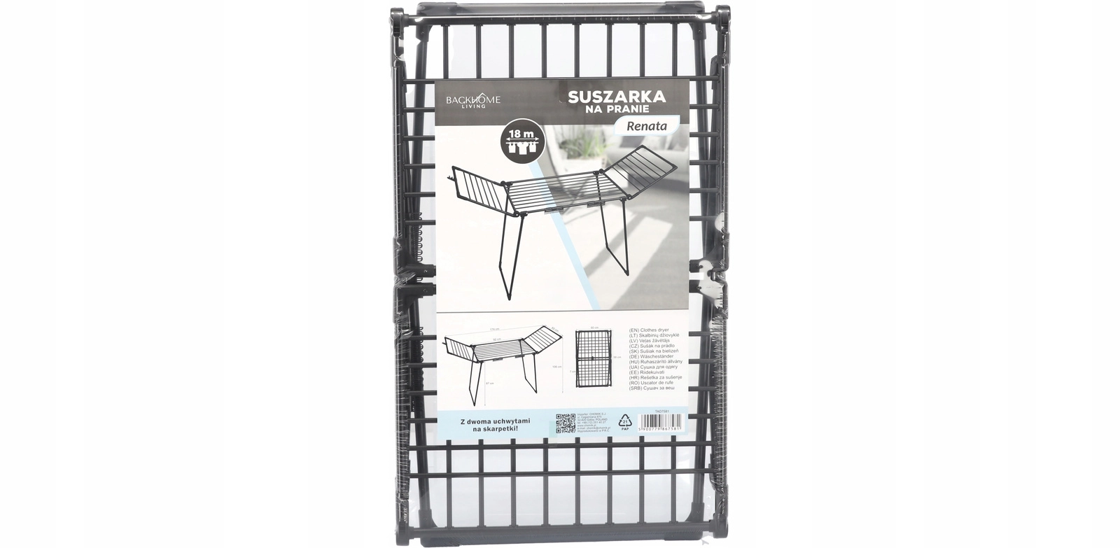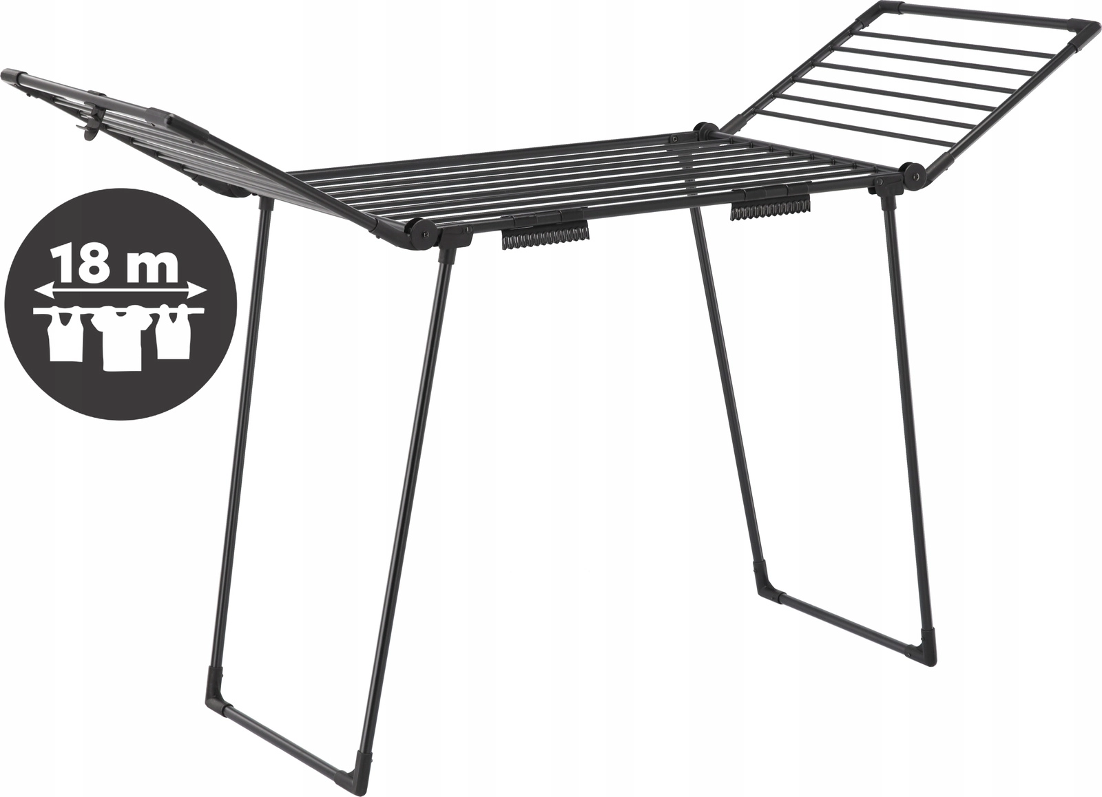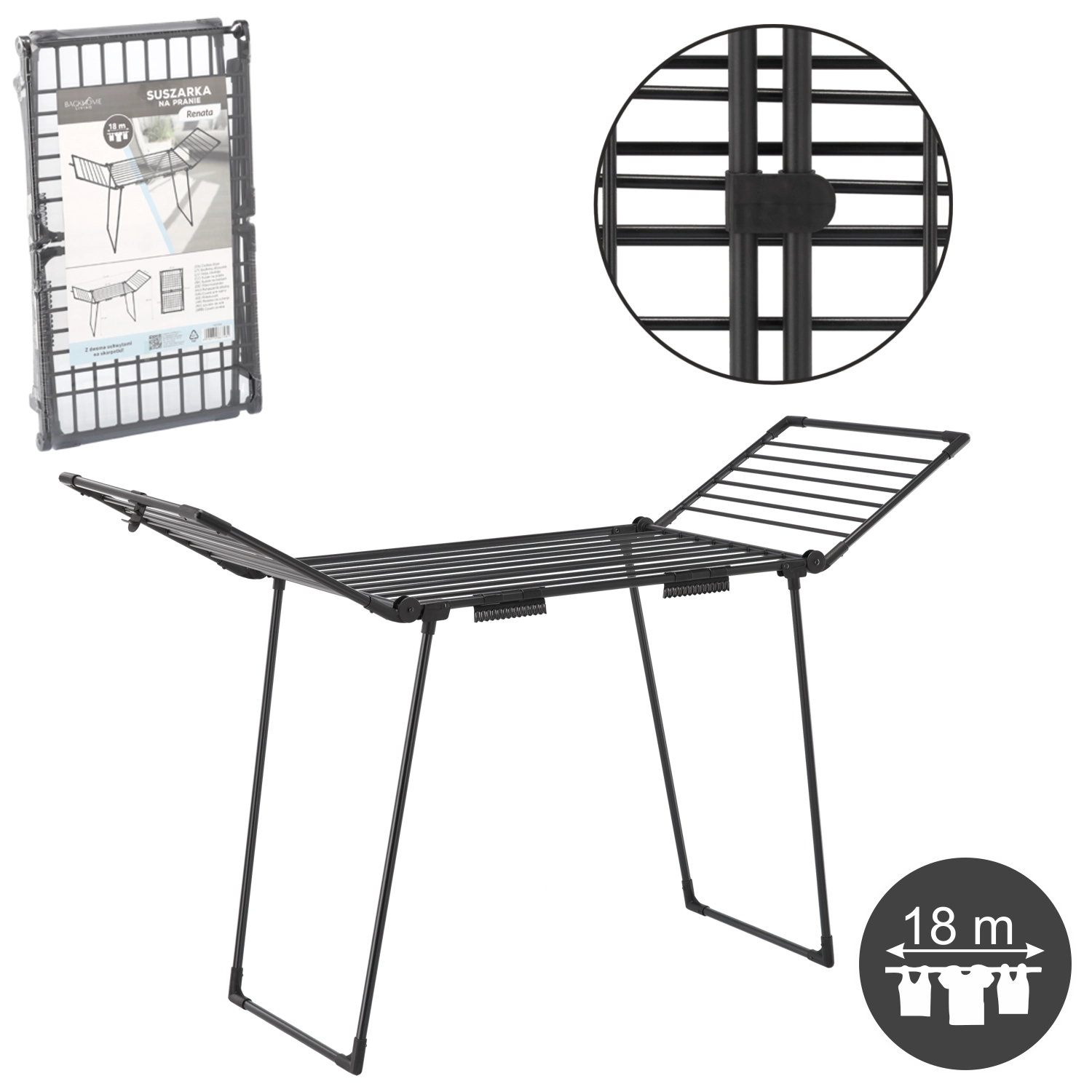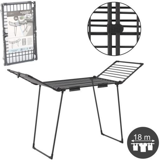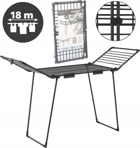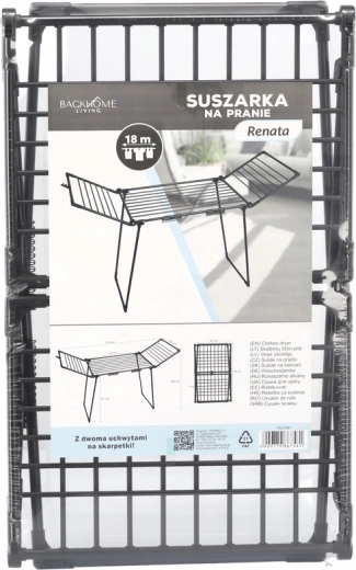 Praktický sušák na prádlo RENATA přináší 18 m sušicí plochy, 2 speciální držáky na ponožky a pevnou konstrukci z kvalitní oceli s práškovým lakováním. Díky rozměrům 174 × 61 × 106 cm je ideální do bytu, na balkon i na zahradu, snadno se skládá a šetří místo.