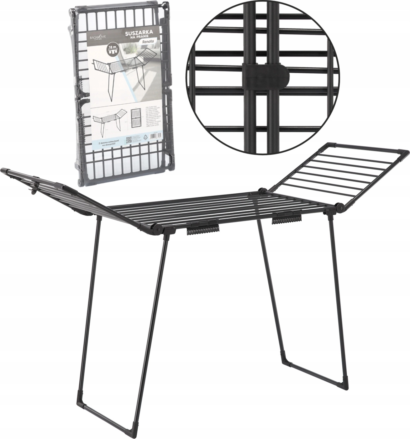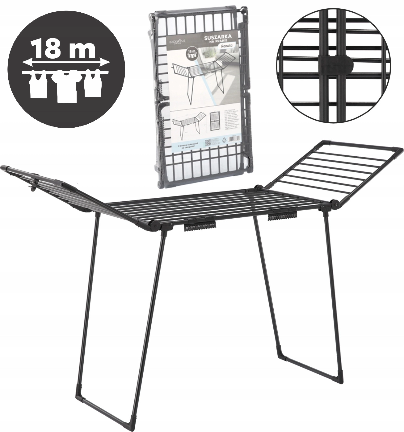 Hledáte prostorný a odolný sušák pro každodenní sušení? Sušák na prádlo Renata od BackHomeLiving nabízí vše, co potřebujete: stabilní konstrukci, velkou sušicí plochu a chytré detaily pro pohodlné používání doma i venku. Matně černé provedení se hodí do moderních interiérů a práškové lakování chrání před korozí.