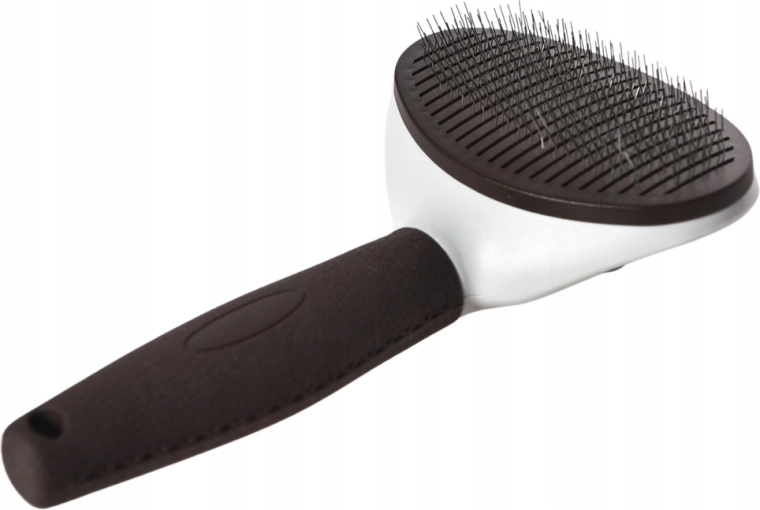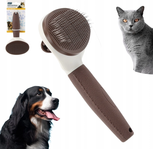 Praktický samočisticí kartáč pro psy a kočky usnadní každodenní péči o srst. Jediným stiskem tlačítka se uvolní nahromaděná srst, takže čištění je rychlé a hygienické. Měkké drátěné štětiny s plastovými koncovkami jsou šetrné ke kůži, současně účinně zachytí uvolněné chlupy a jemně masírují. Ergonomická protiskluzová rukojeť zajišťuje pohodlný úchop i při delším česání a pomáhá snížit línání a zlepšit vzhled srsti.