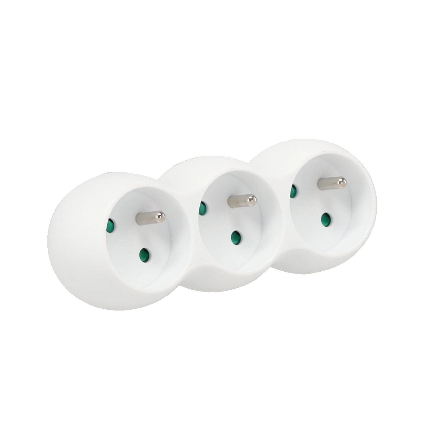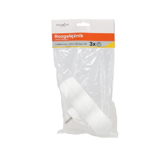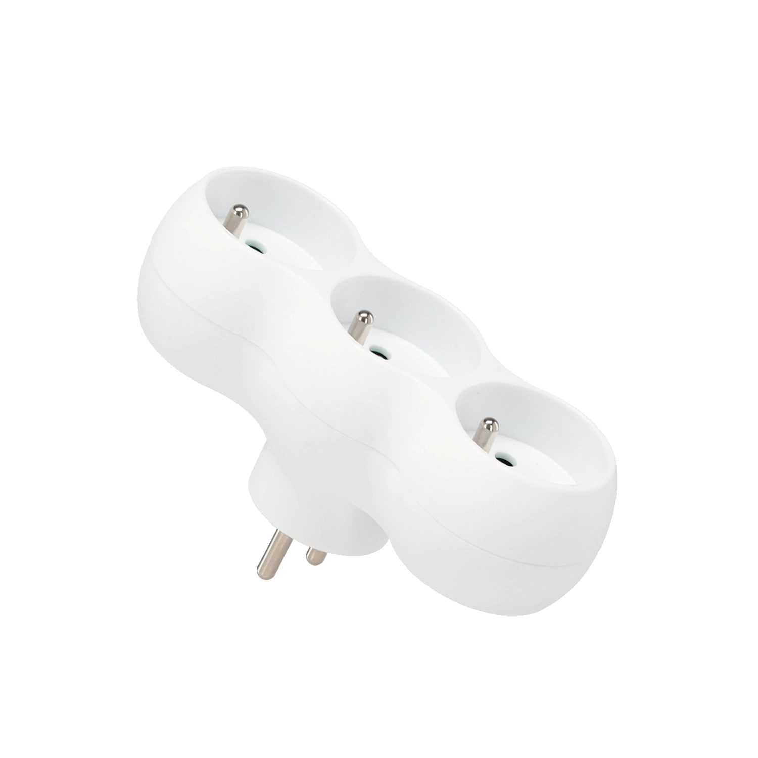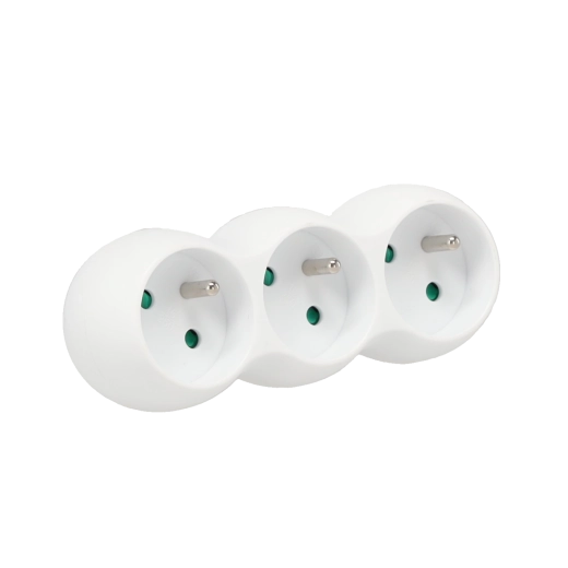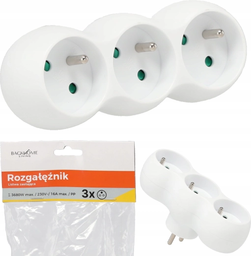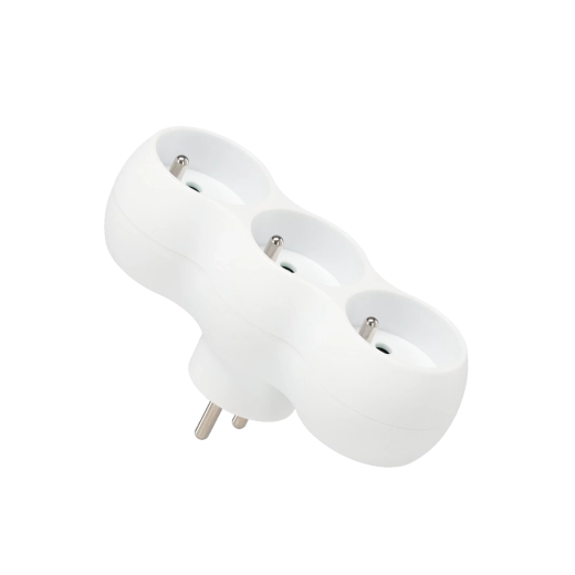 Praktický bílý rozbočovač se třemi zásuvkami typu francouzského (Schuko) pro každodenní použití v domácnosti i kanceláři. Nabízí 3 zásuvky 230 V, max. výkon 3680 W a bezpečnostní clony pro děti. Díky odolnému materiálu PP a elegantnímu bílému designu se hodí do každého interiéru.