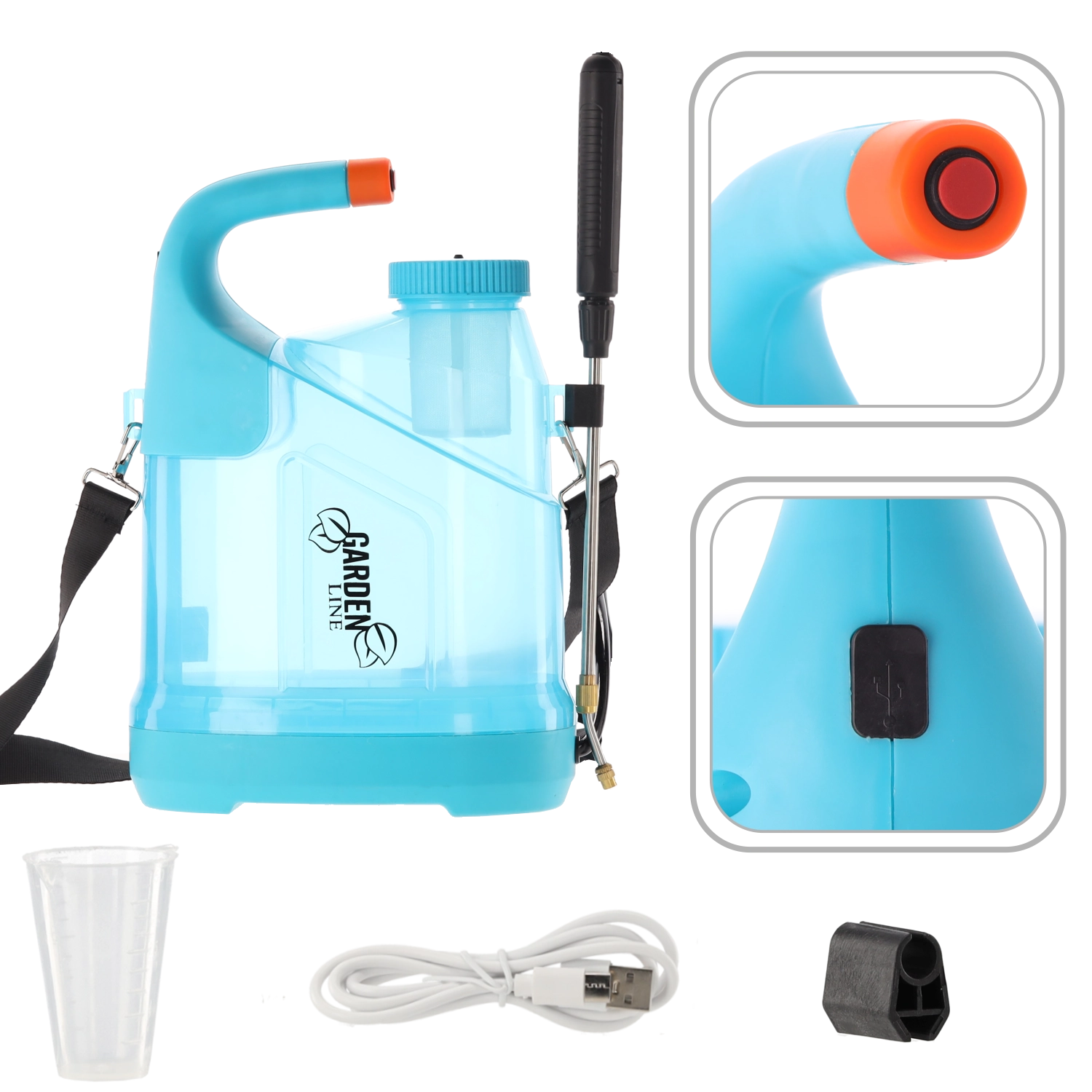 Díky pracovnímu tlaku 0,1–0,3 MPa a dosahu až 5–7 m vertikálně a 3–5 m horizontálně zvládnete pohodlně ošetřit keře i vyšší stromy. Integrovaná Li‑ion baterie 2500 mAh (5 V) zajistí až 120 minut provozu a přes USB ji dobijete za zhruba 180 minut. Součástí je měrka pro přesné dávkování a vstupní filtr, který chrání systém před nečistotami.