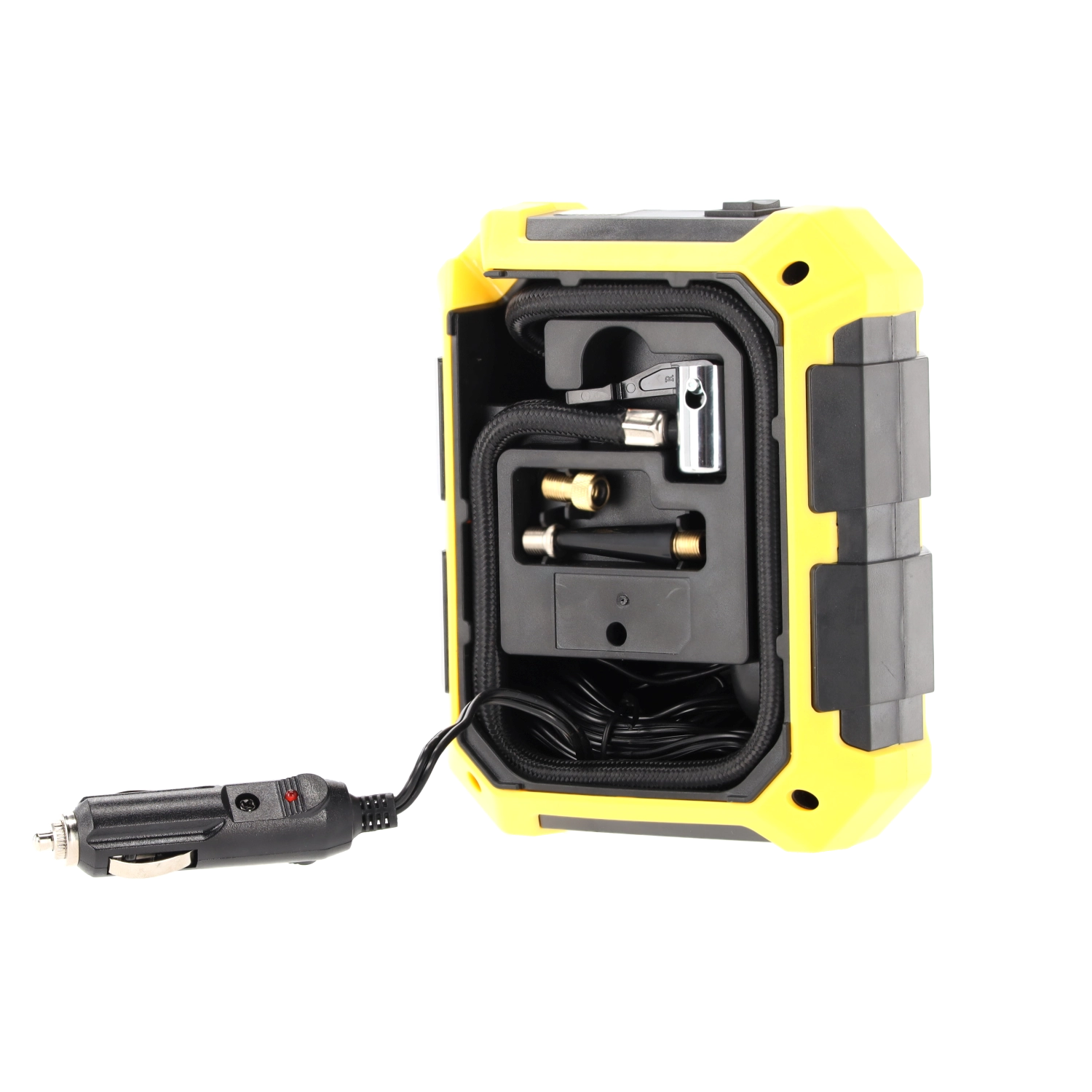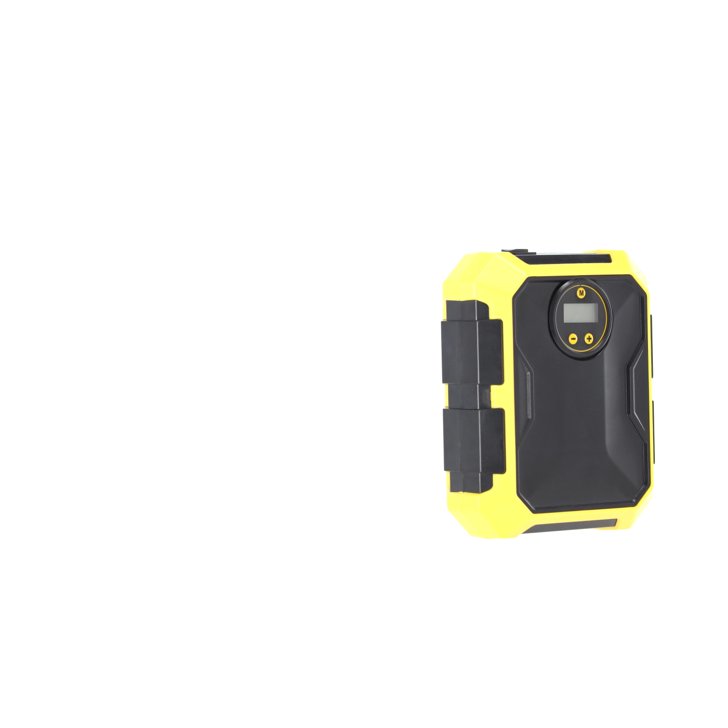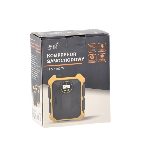 Kompaktní autokompresor 12V / 100W s digitálním displejem, automatickým vypnutím po dosažení nastaveného tlaku a LED světlem. Praktické napájení z 12V zásuvky, volba 4 jednotek tlaku (PSI, kPa, bar, kg/cm²) a integrované schránky na hadici, kabel a příslušenství z něj dělají ideální vybavení pro každý vůz.