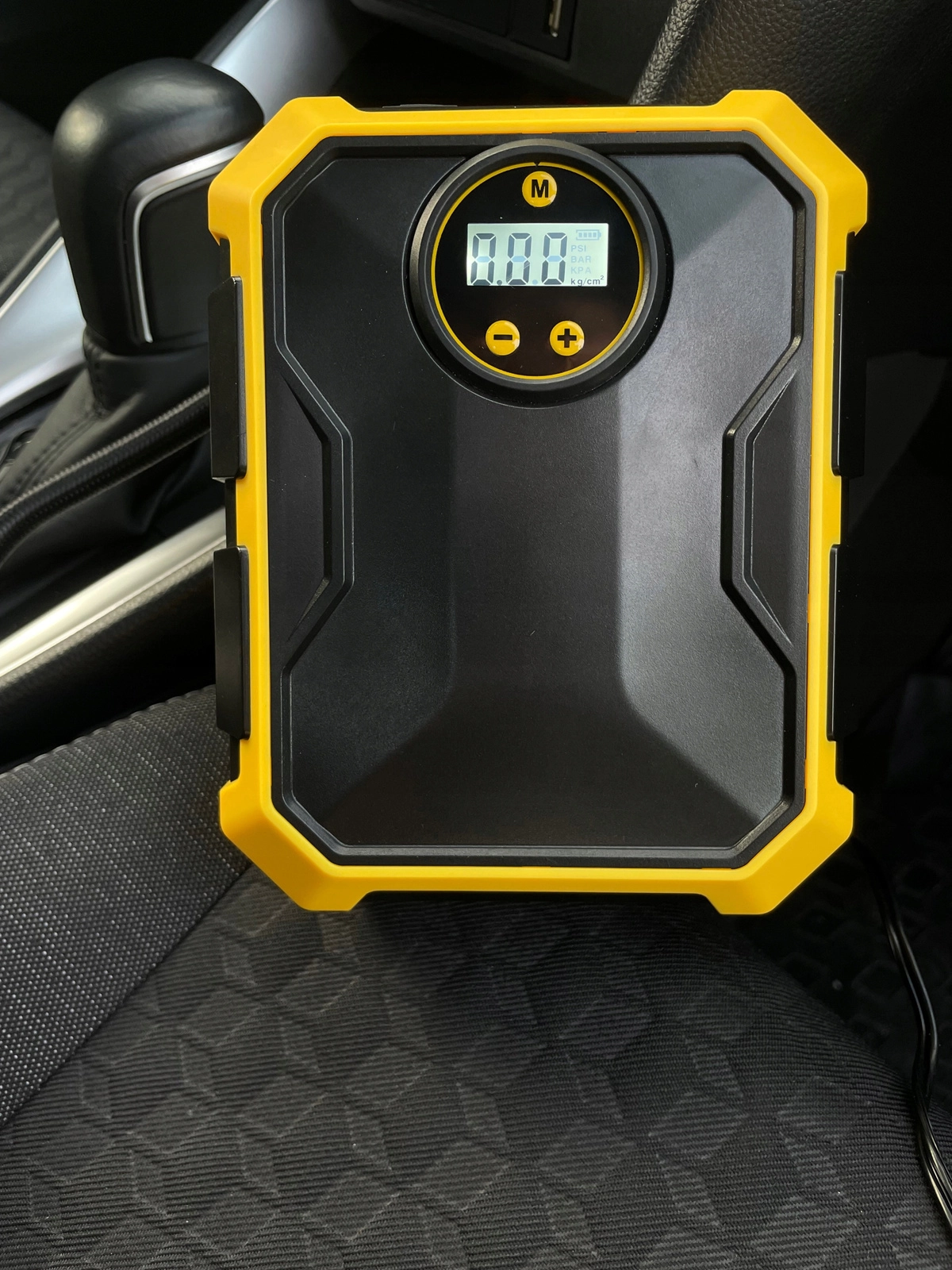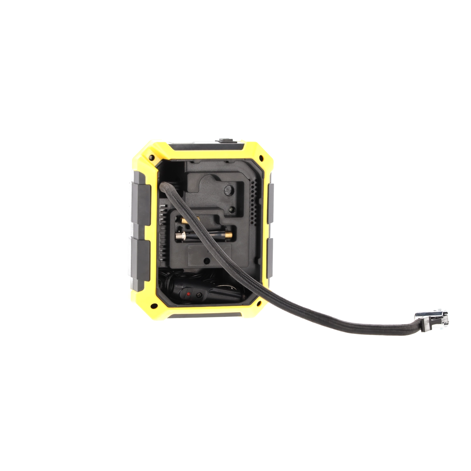 Udržujte správný tlak v pneumatikách kdykoli a kdekoli. Tento výkonný přenosný kompresor poskytuje průtok až 23 l/min, snadno se připojuje do 12V zásuvky a díky předvolbě cílového tlaku a automatickému vypnutí bezpečně nahustí pneu bez rizika přehuštění.