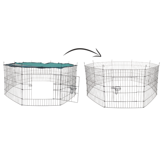Bezpečný a pohodlný prostor pro vašeho mazlíčka – modulární ohrádka z práškově lakované oceli nabízí jistotu, stabilitu a dlouhou životnost. Integrovaná stínící síť poskytuje příjemný stín a chrání před horkem i UV zářením, aby si váš mazlíček užil pobyt venku v maximálním komfortu.