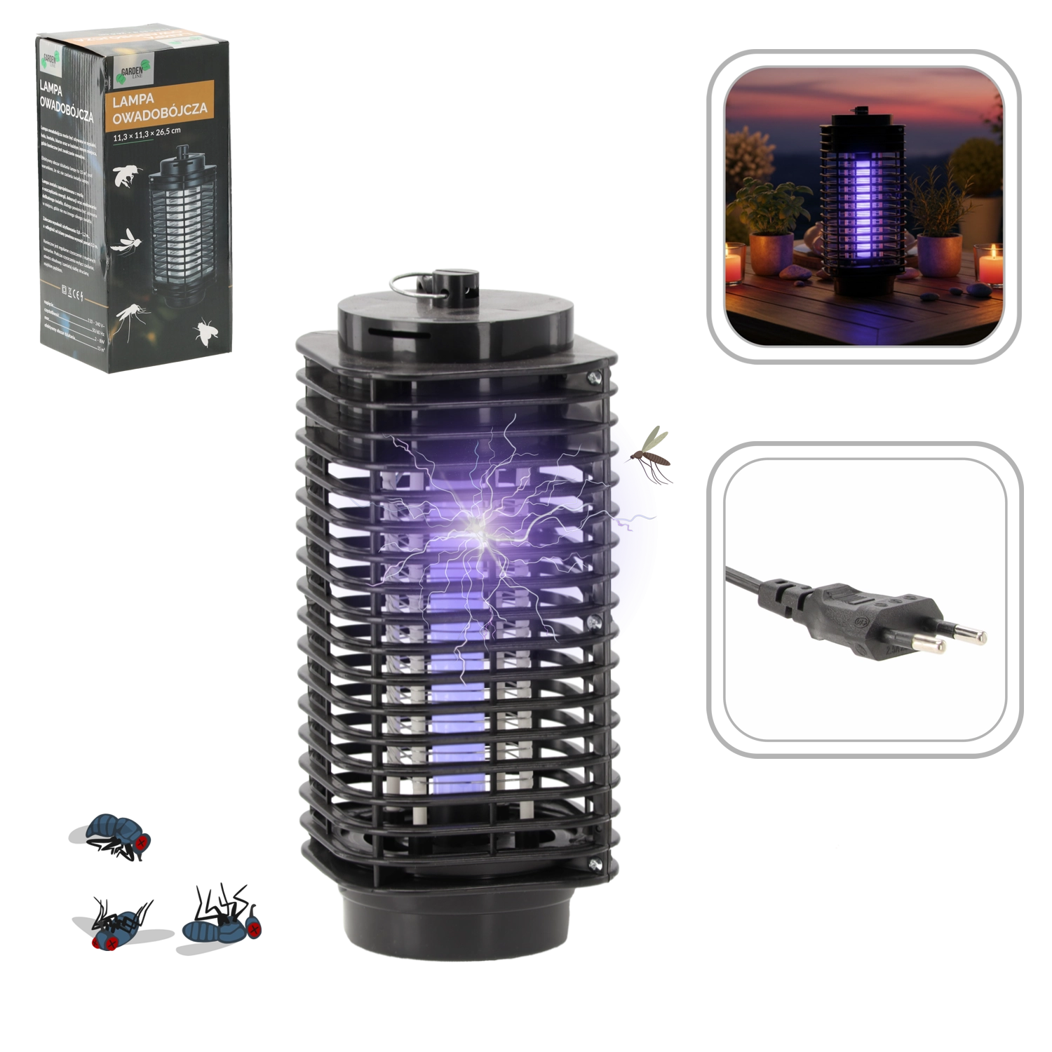 Vnitřní UV/LED trubice spolehlivě přitahuje komáry a mouchy, které jsou následně zneškodněny elektrickou mřížkou – bez chemie a zápachu.