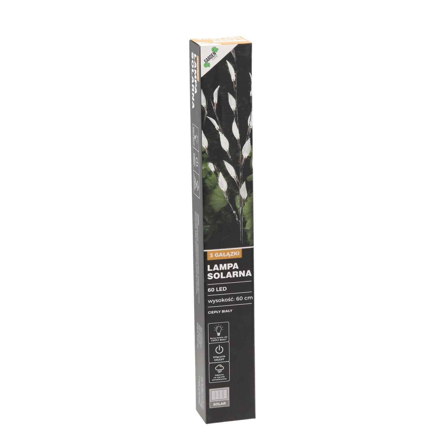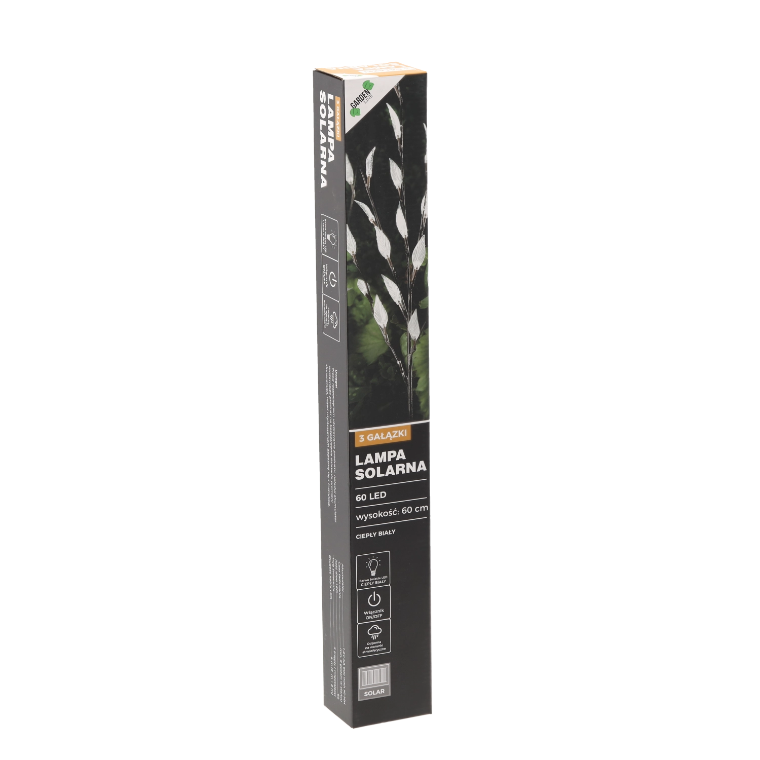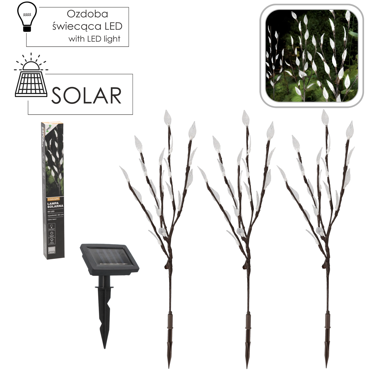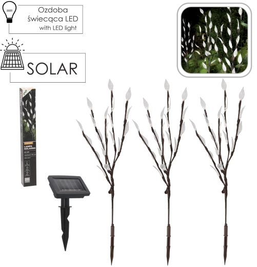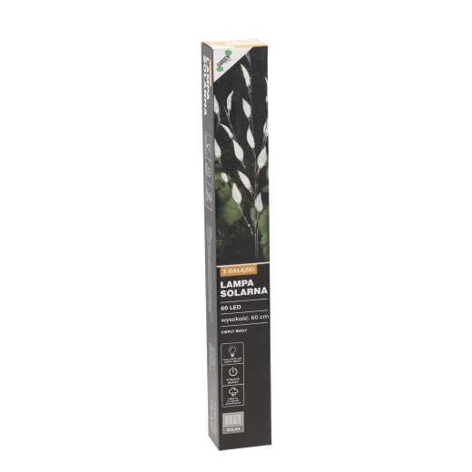 Vytvořte si světelnou dekoraci, která zaujme ve dne i v noci. Solární zahradní lampa s výškou cca 60 cm má tři jemné větvičky se 60 LED diodami v teplém bílém odstínu. Díky solárnímu napájení šetří energii a funguje zcela bez zásuvky – ideální pro záhony, cesty, terasy i balkony.