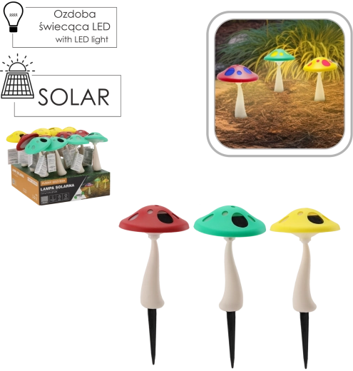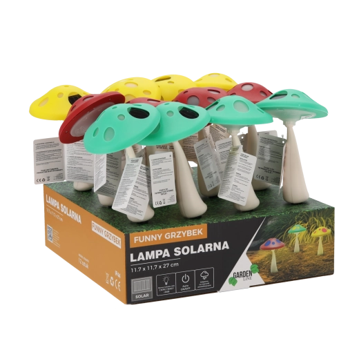 Okouzlující solární lampy ve tvaru hřibu promění vaši zahradu, terasu či květinové záhony v útulné místo s pohádkovou atmosférou. Integrovaná 1x bílá LED a 1x RGB LED se postarají o jemné bílé nasvícení i barevné efekty. Lampa se přes den nabíjí sluneční energií a po setmění se automaticky rozsvítí.