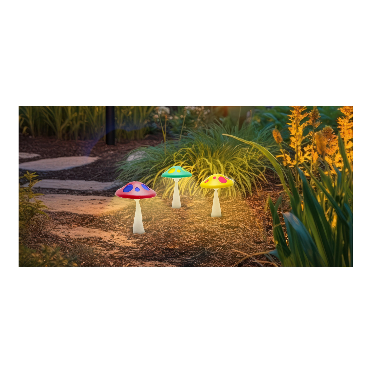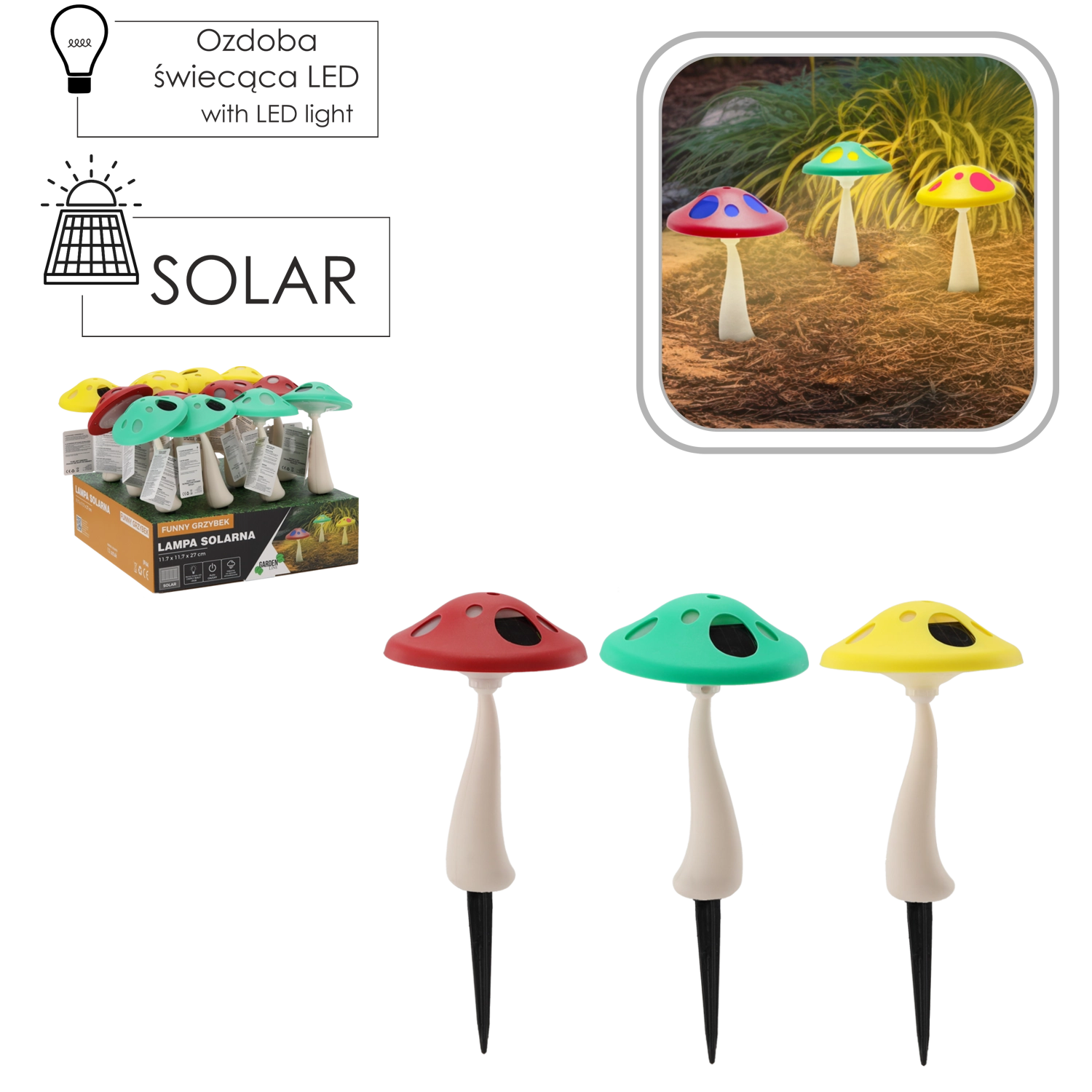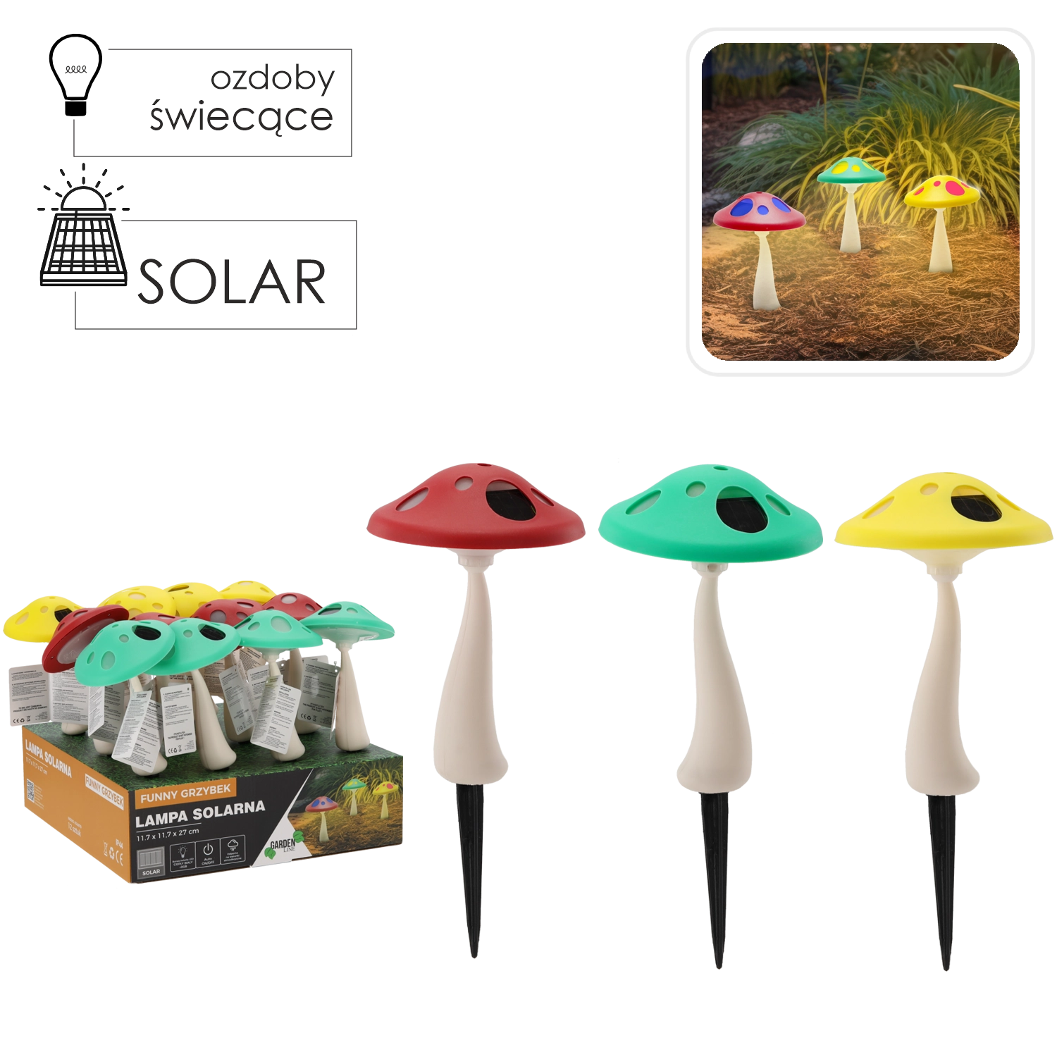 Rozjasněte svou zahradu s hravými solárními lampami ve tvaru hřibu. Díky kombinaci bílé a RGB LED vytváří působivé světelné efekty, které oživí chodníčky i záhony. Automatické nabíjení ze slunce, provoz až 6–7 hodin a odolné provedení na zapichovacím kolíku z nich dělají stylní a bezúdržbové venkovní osvětlení.