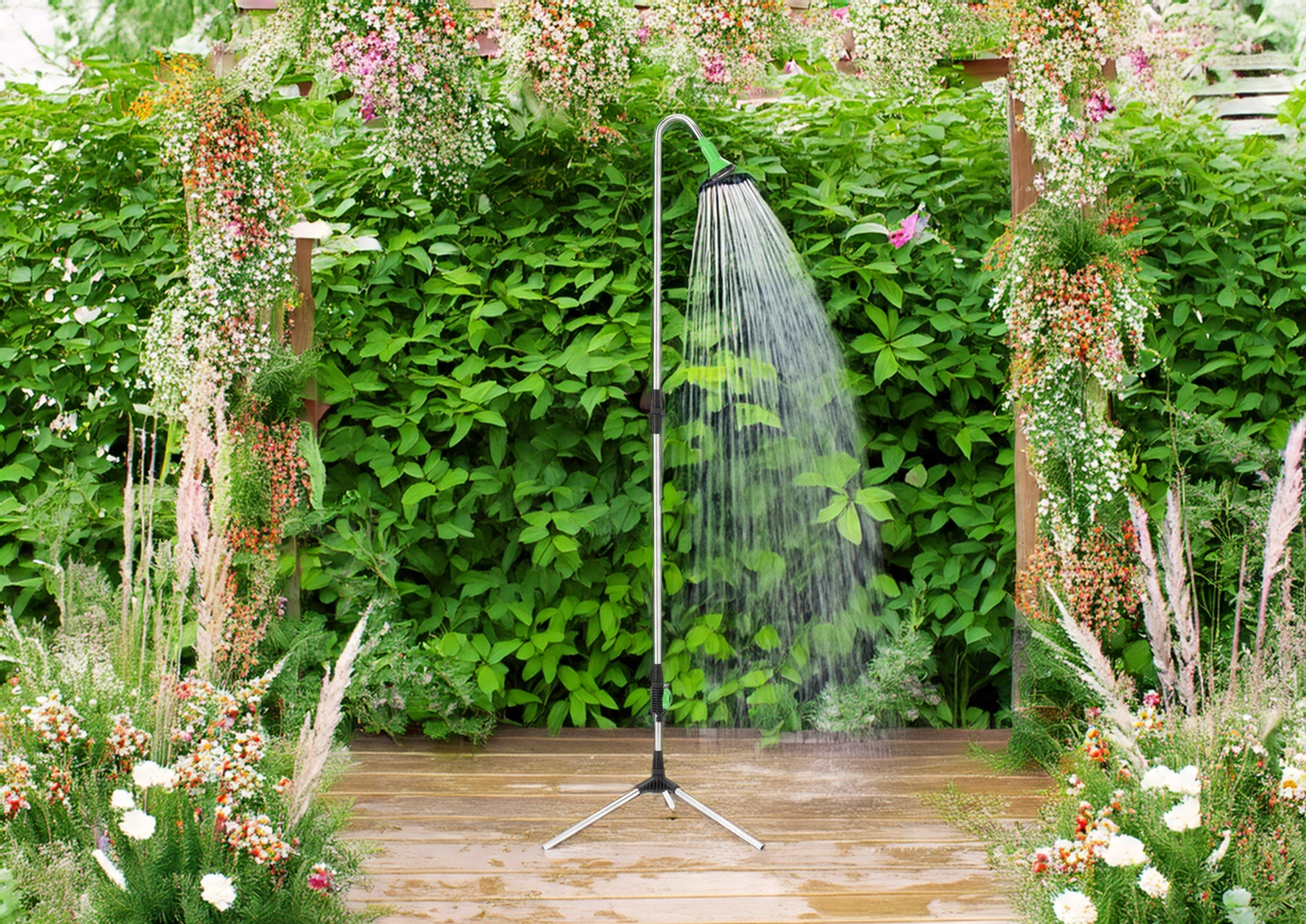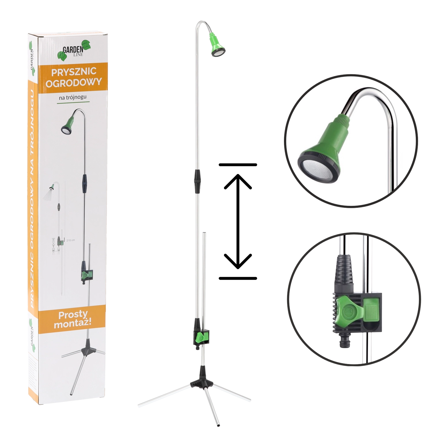 Zahradní sprcha na trojnožce je praktické řešení pro horké dny i rychlé opláchnutí po práci na zahradě. Stabilní třínohý stojan zajistí pevné umístění na různých površích a plynulé nastavení výšky přizpůsobí proud vody dětem i dospělým. Připojení je otázkou okamžiku – stačí standardní rychlospojka na zahradní hadici.