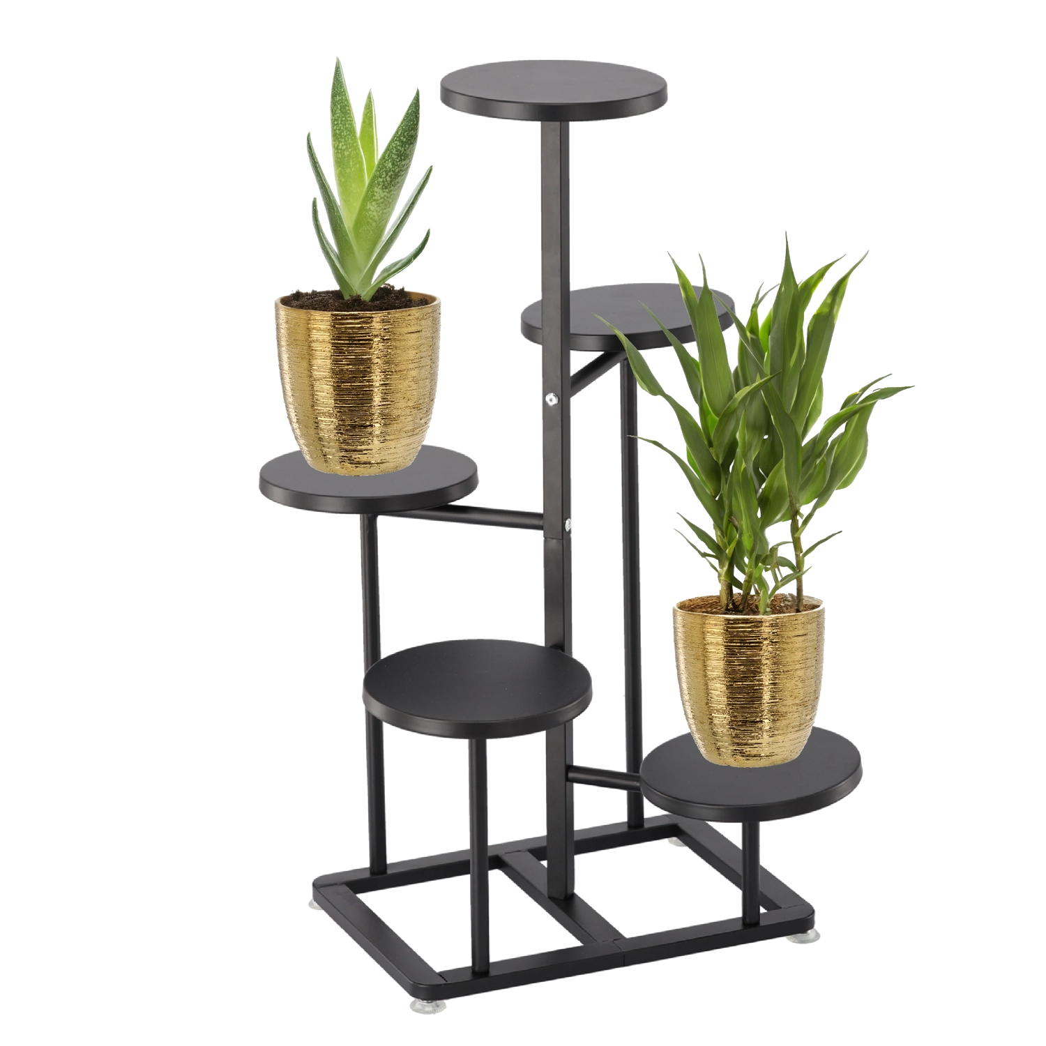 Elegantní 5úrovňový stojan na květiny z odolného kovu v černé barvě dodá vašemu domovu či terase styl i pořádek. Jeho víceúrovňová konstrukce šetří místo a zajišťuje, aby každá rostlina měla dostatek světla. Díky stabilnímu provedení a rozměrům 47 × 47 × 80 cm snadno vystavíte až pět květináčů různých velikostí v moderním, minimalistickém designu.