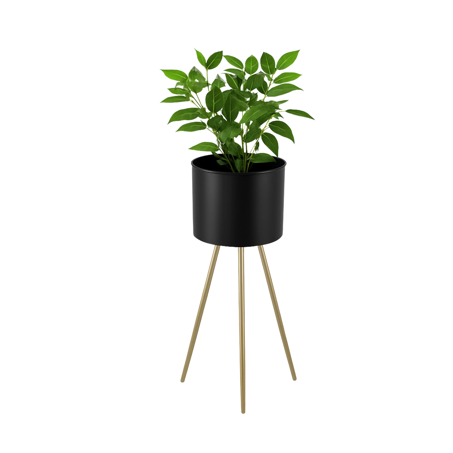 Dodajte svým rostlinám výjimečné místo. Tento elegantní kovový stojan v černé barvě se zlatými akcenty působí sofistikovaně a přirozeně zapadne do moderního, glamour i loftového stylu. Kompaktní rozměry umožňují umístění i v menších prostorech, kde pomůže efektivně vystavit oblíbené květiny či dekorace.