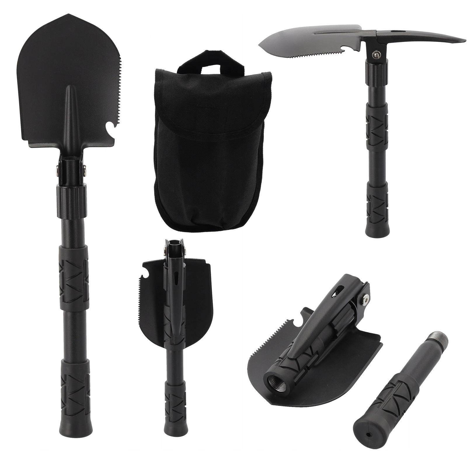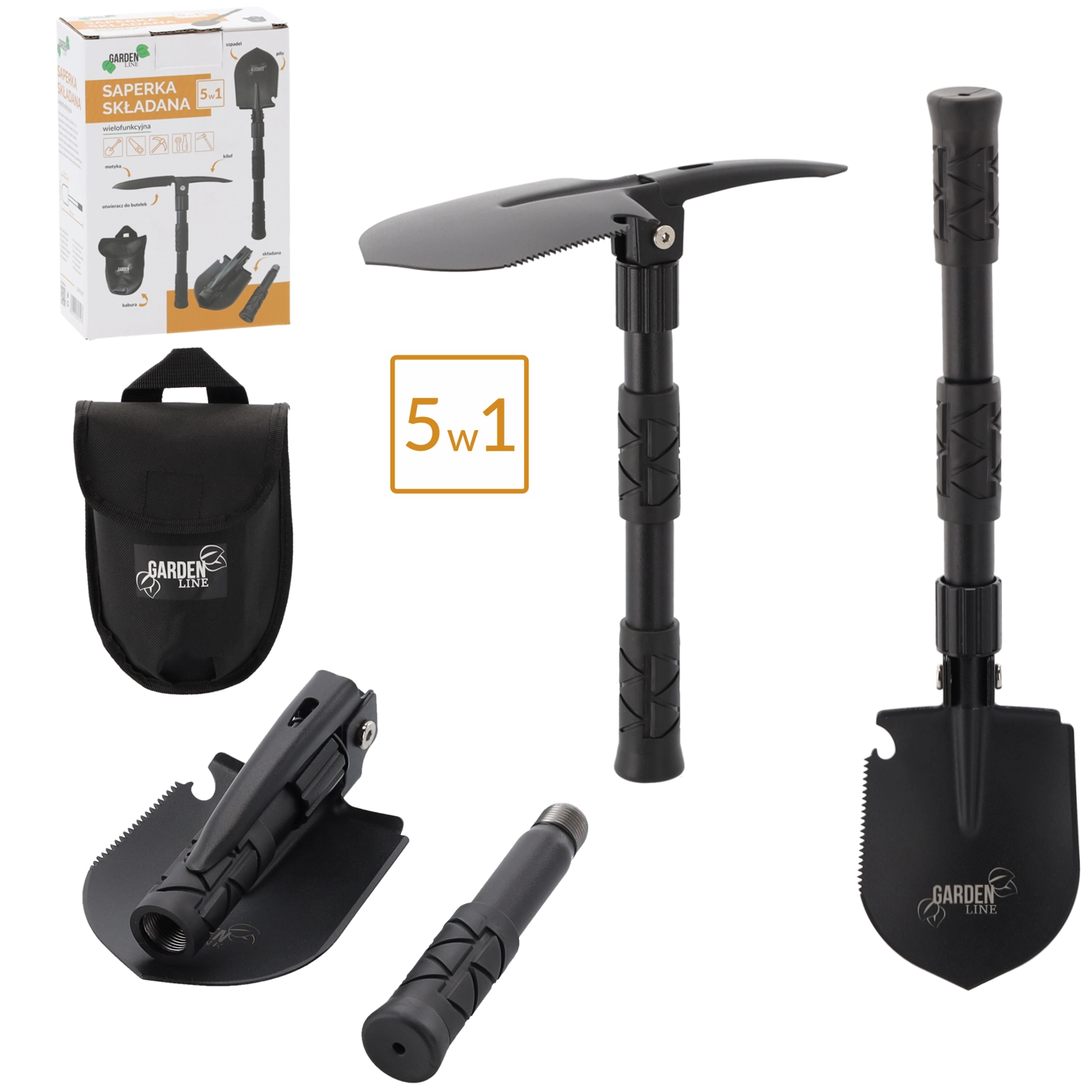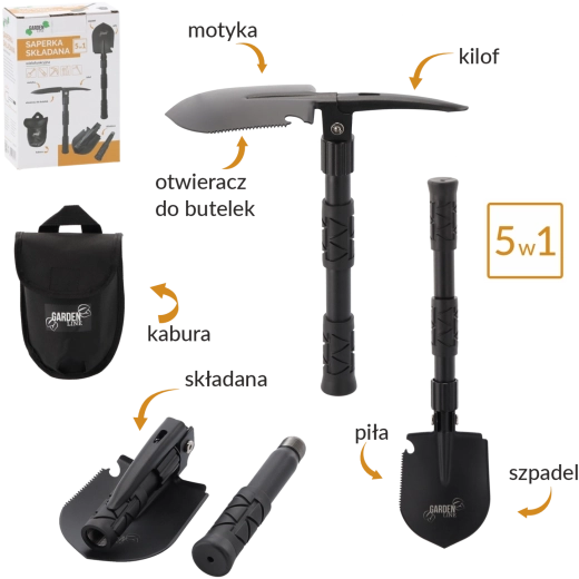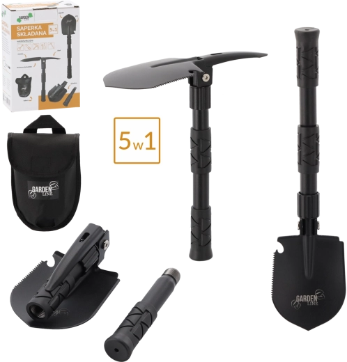 Objevte univerzální nářadí pro každou výpravu. Tato multifunkční skládací lopatka kombinuje až pět funkcí v jednom těle – od rychlého kopání a úprav terénu až po řezání větví a práci v tvrdé půdě. Robustní manganová ocel čepele a ocelová rukojeť zajišťují dlouhou životnost i v náročných podmínkách.