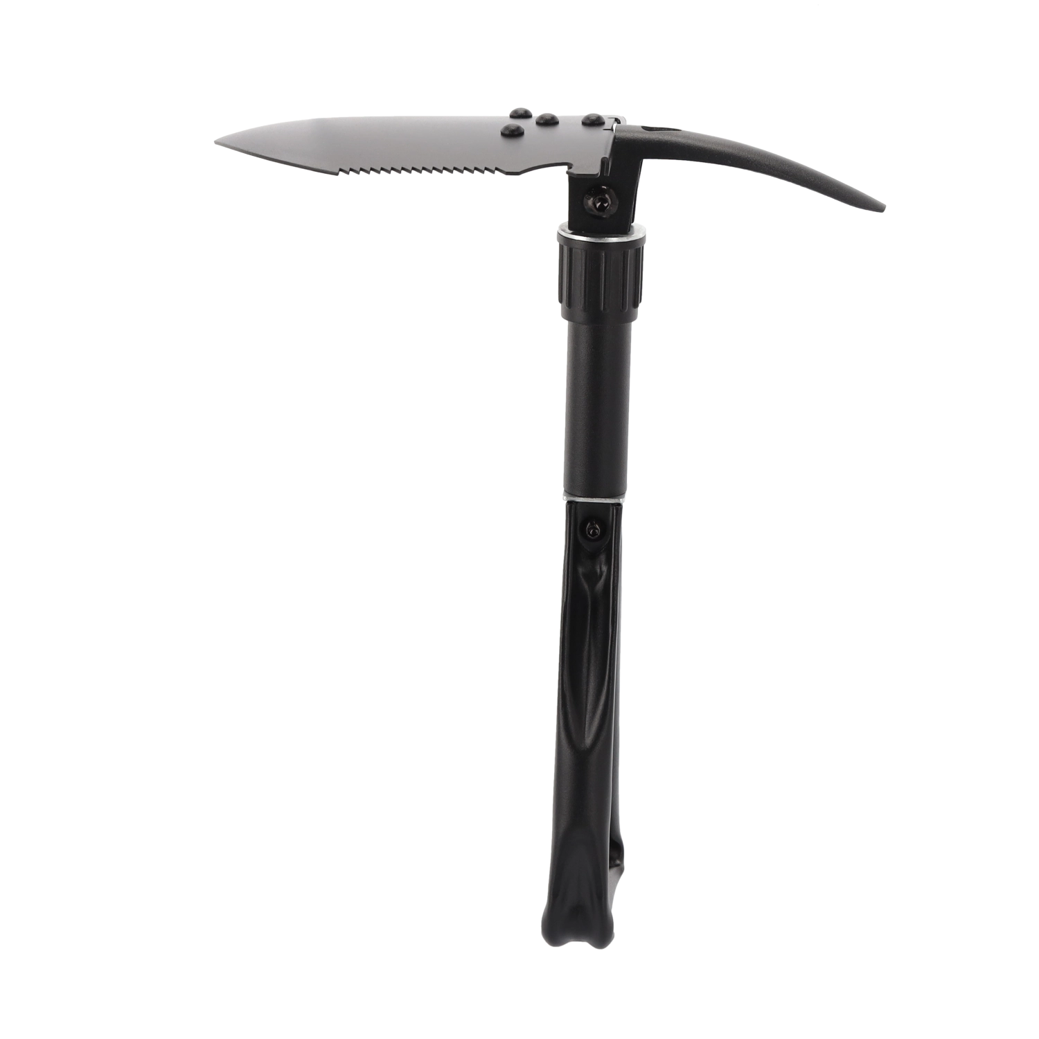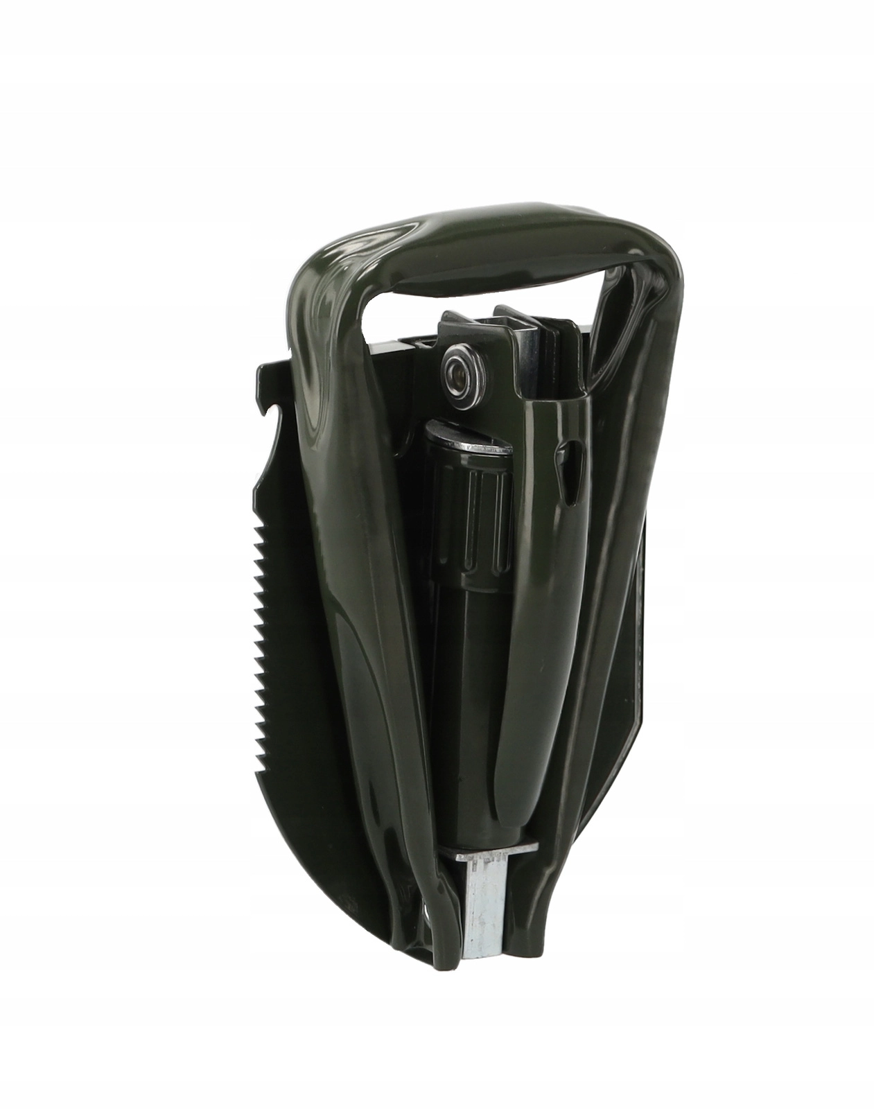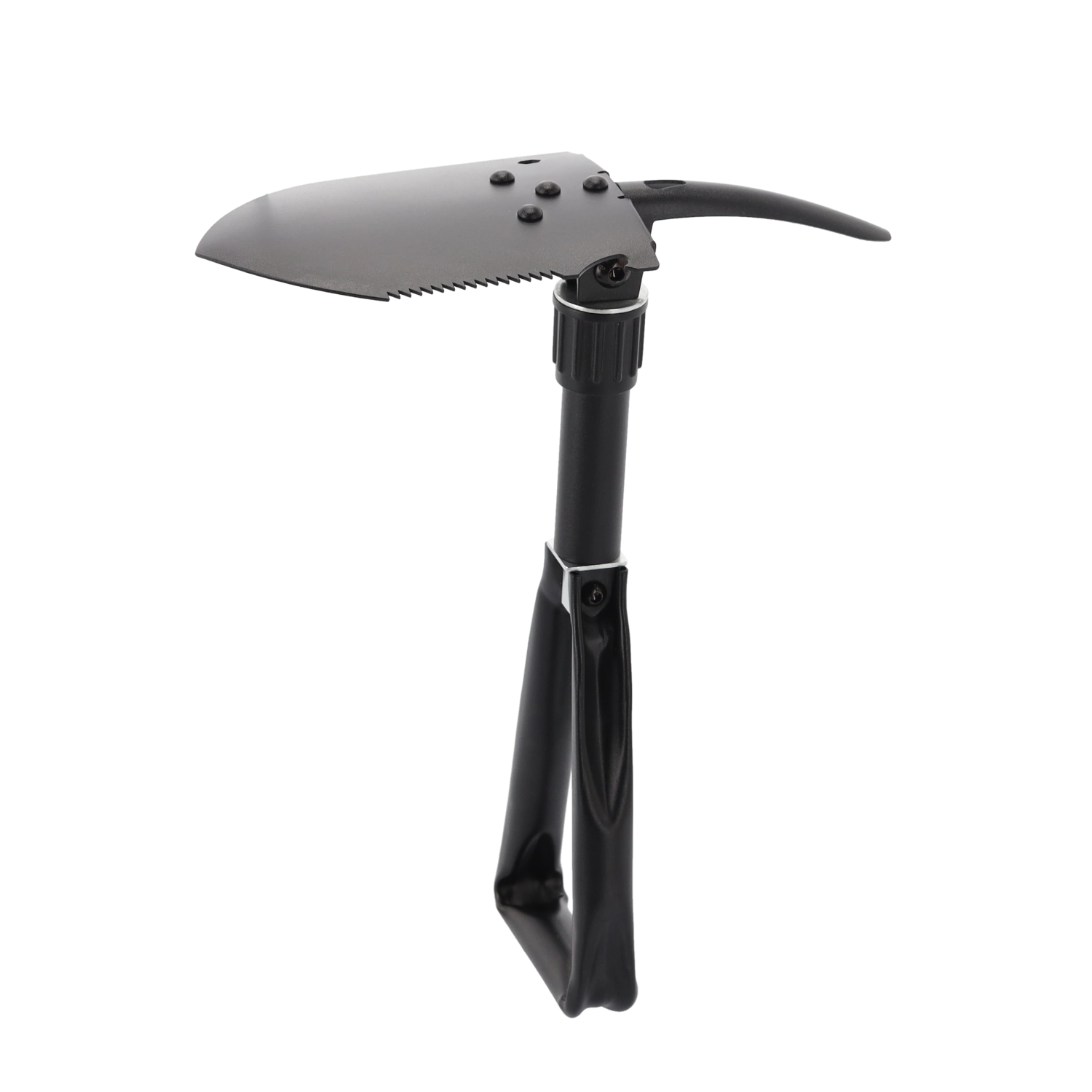 Tato odolná skládací saperka kombinuje lopatku, motyku, pilku, krumpáček, šestihranný klíč a otvírák lahví v jediném nástroji. Zvládne kopání, rozbíjení půdy, řezání kořenů a větví i drobné outdoorové práce. Ocelový list z manganové oceli s pilovým ostřím a uzamykatelný kloub zajistí stabilitu při zátěži.