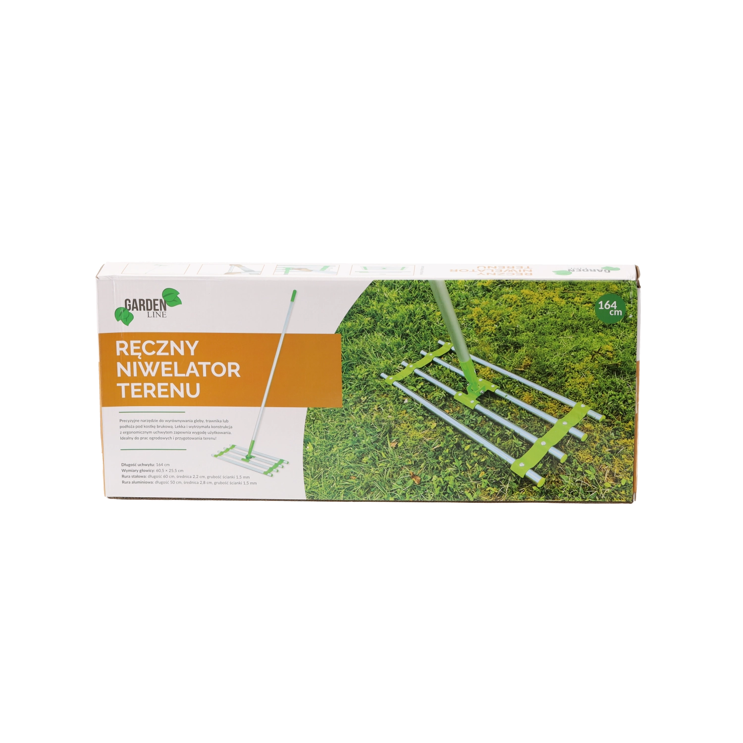 Praktický ruční nivelátor terénu s délkou 164 cm pro rychlé a přesné srovnávání půdy, štěrku či písku. Nabízí robustní ocelovou a hliníkovou konstrukci, širokou hlavici pro rovnoměrné tažení a pohodlnou manipulaci i při delší práci.