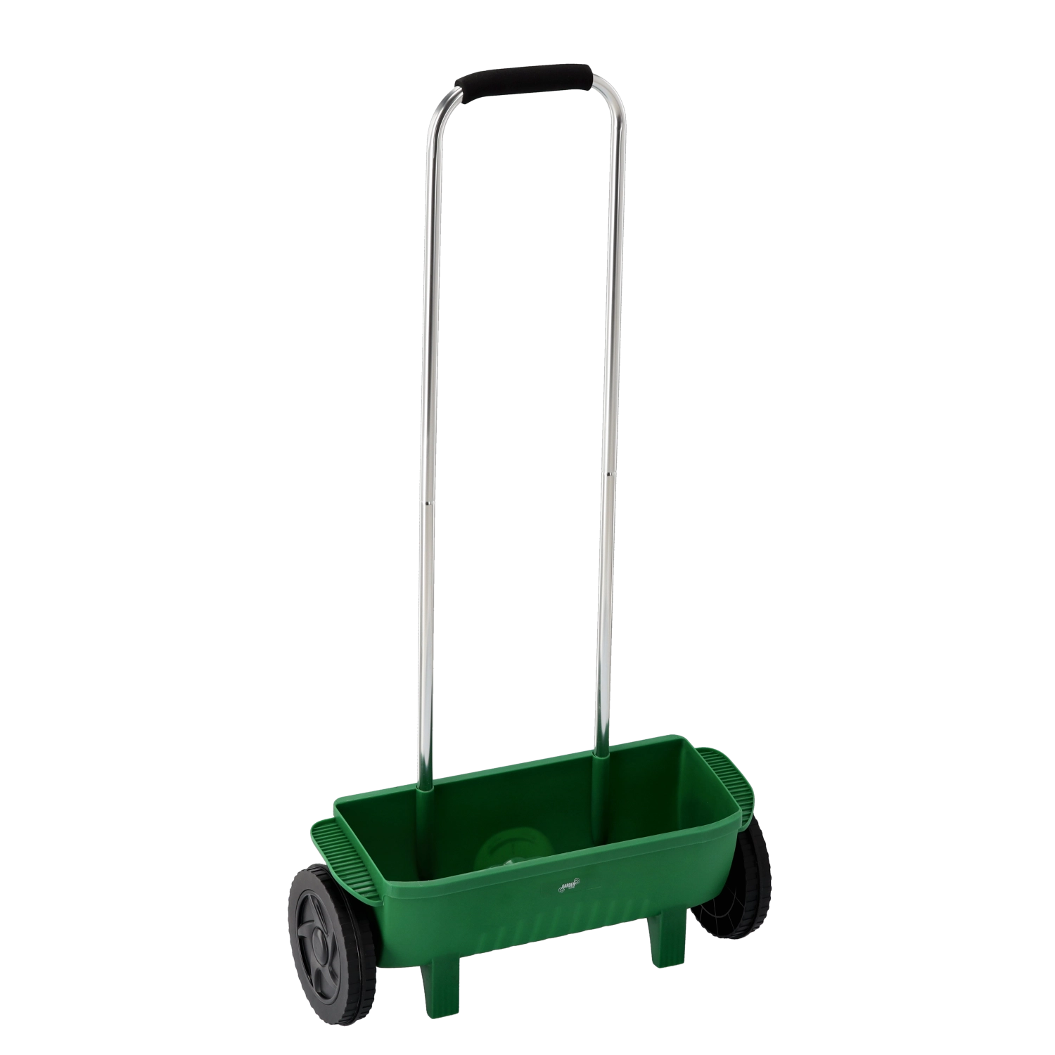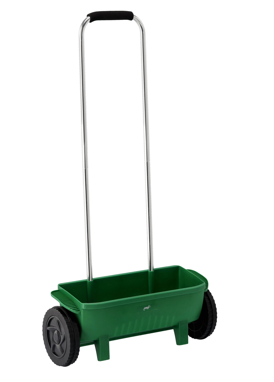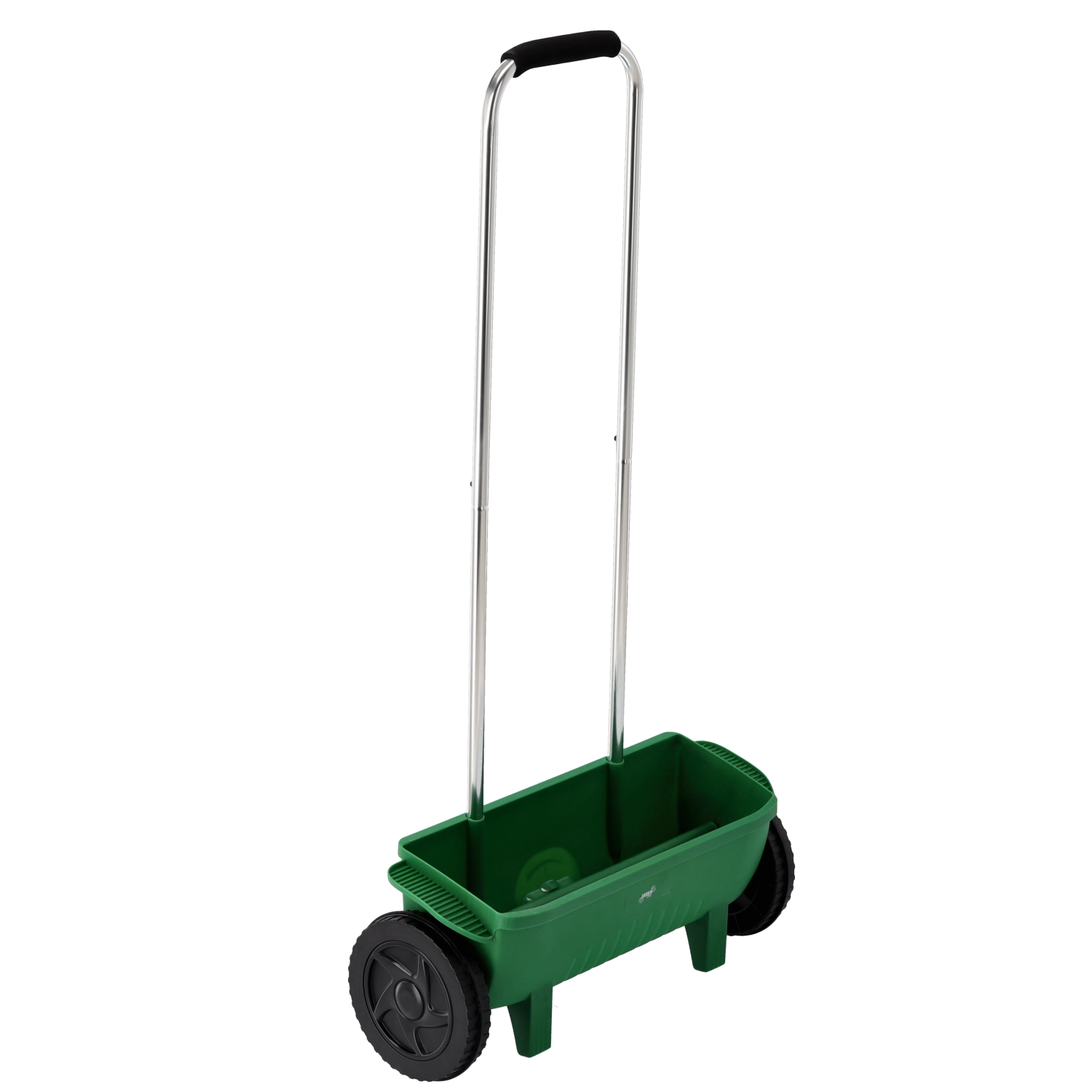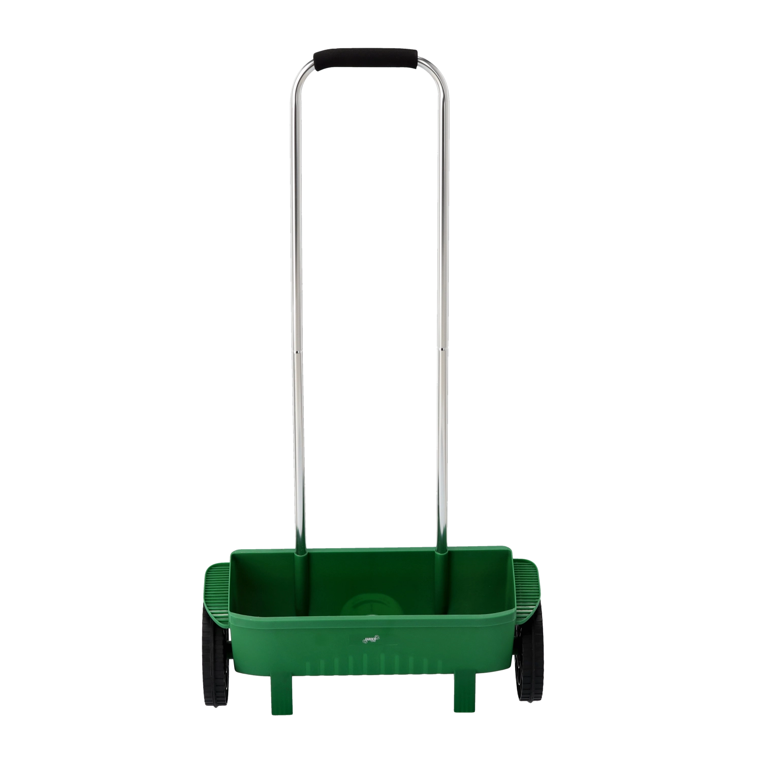 Praktické zahradní rozmetadlo pro přesné a konzistentní rozhozy po celé ploše trávníku i záhonů. Velký zásobník o objemu 10 l s odolným plastovým košem a robustními koly zajišťuje plynulý pohyb a stabilitu, zatímco ergonomická rukojeť přináší pohodlí i při delší práci.