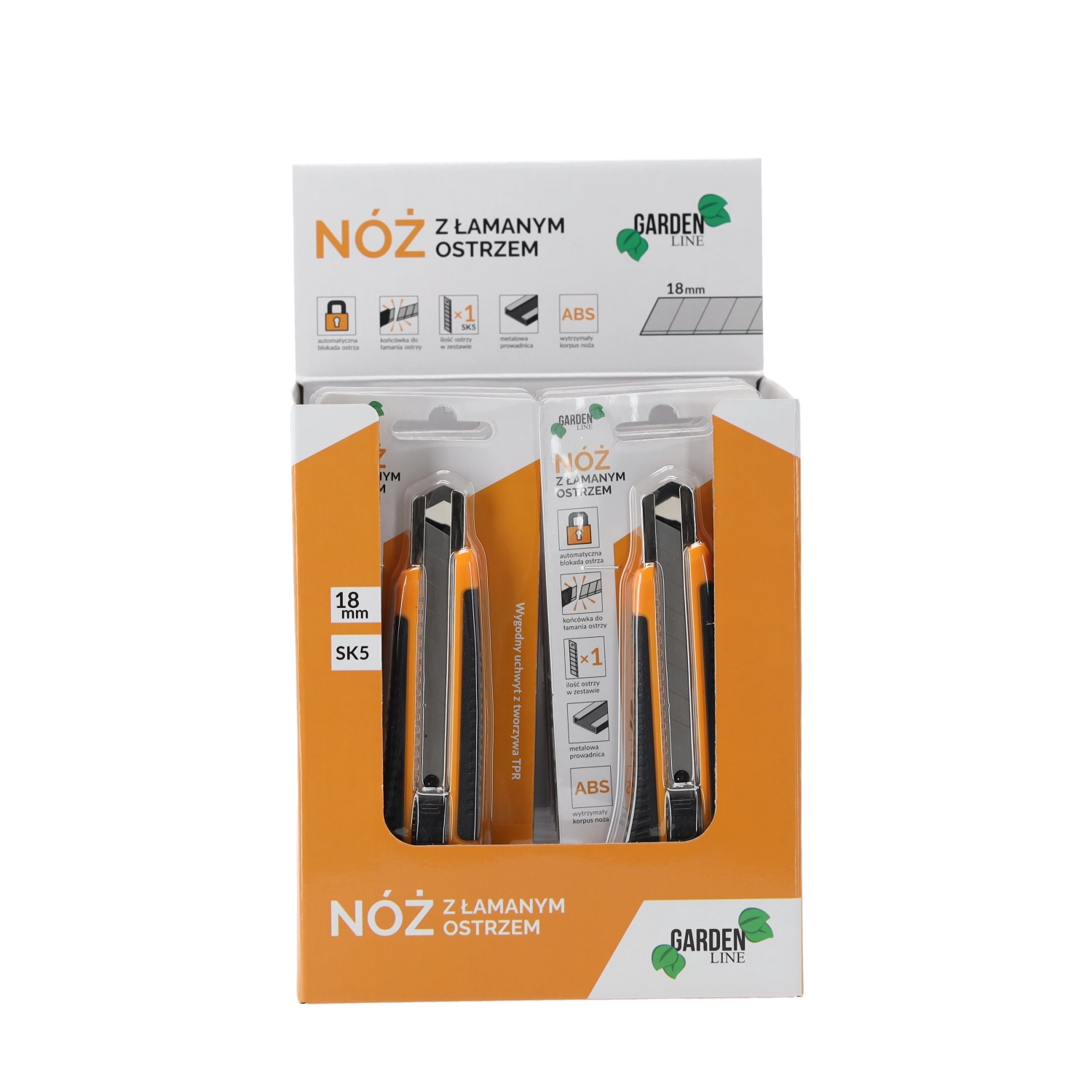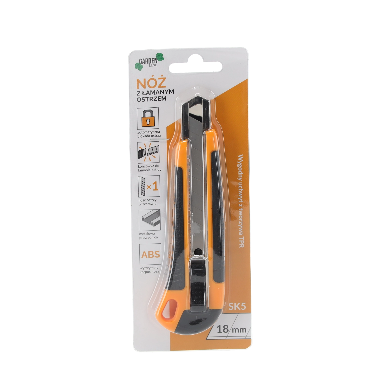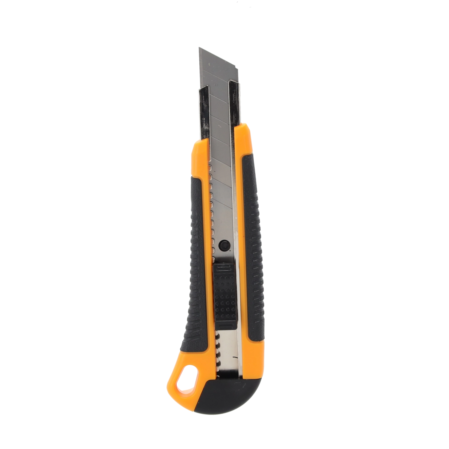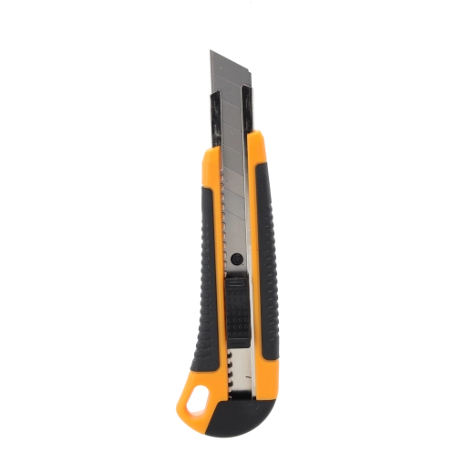 Praktický a odolný řezací nůž s vylamovací čepelí o šířce 18 mm pro přesné a bezpečné řezání. Nabízí automatickou blokaci čepele, pohodlný ergonomický úchop TPR a pevné ABS tělo pro každodenní použití v dílně, kanceláři i domácnosti.