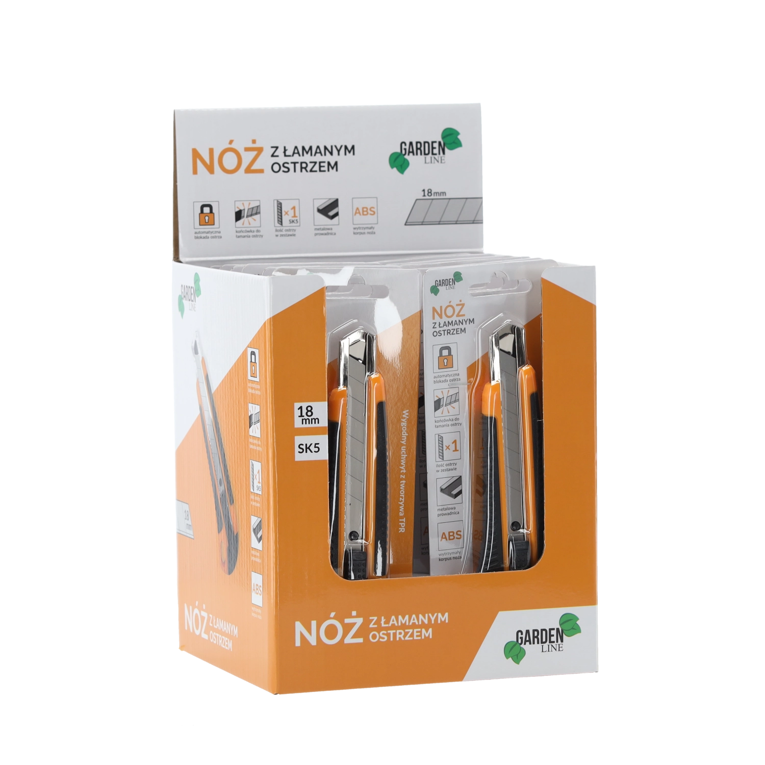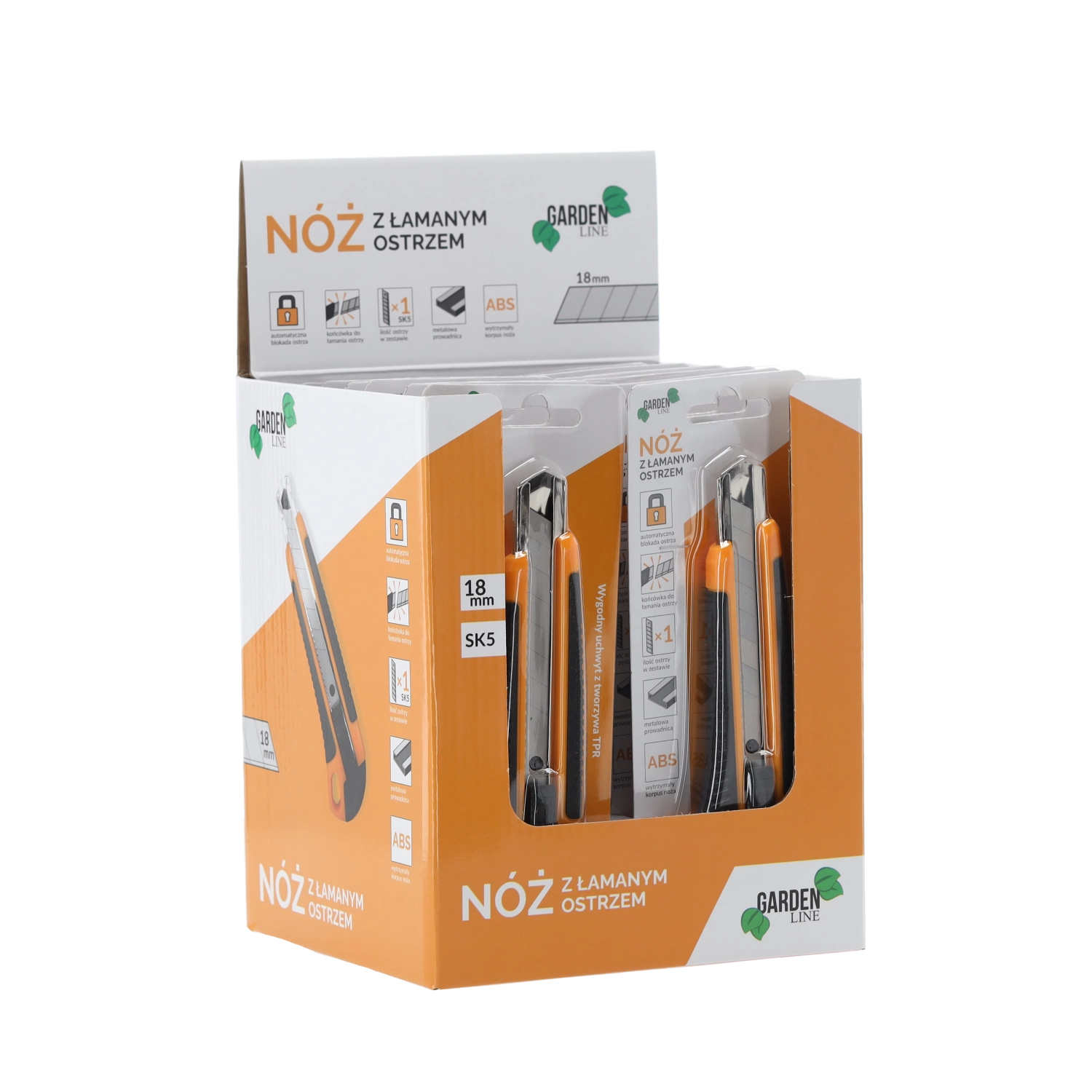 Spolehlivý nůž s vylamovací čepelí 18 mm je ideální pro řezání kartonu, fólií, koberců či plastů. Robustní ABS korpus v kombinaci s protiskluzovým TPR úchytem zajišťuje jistotu v ruce a komfort při delší práci. Automatická aretace fixuje čepel v požadované pozici pro bezpečné a přesné řezy.