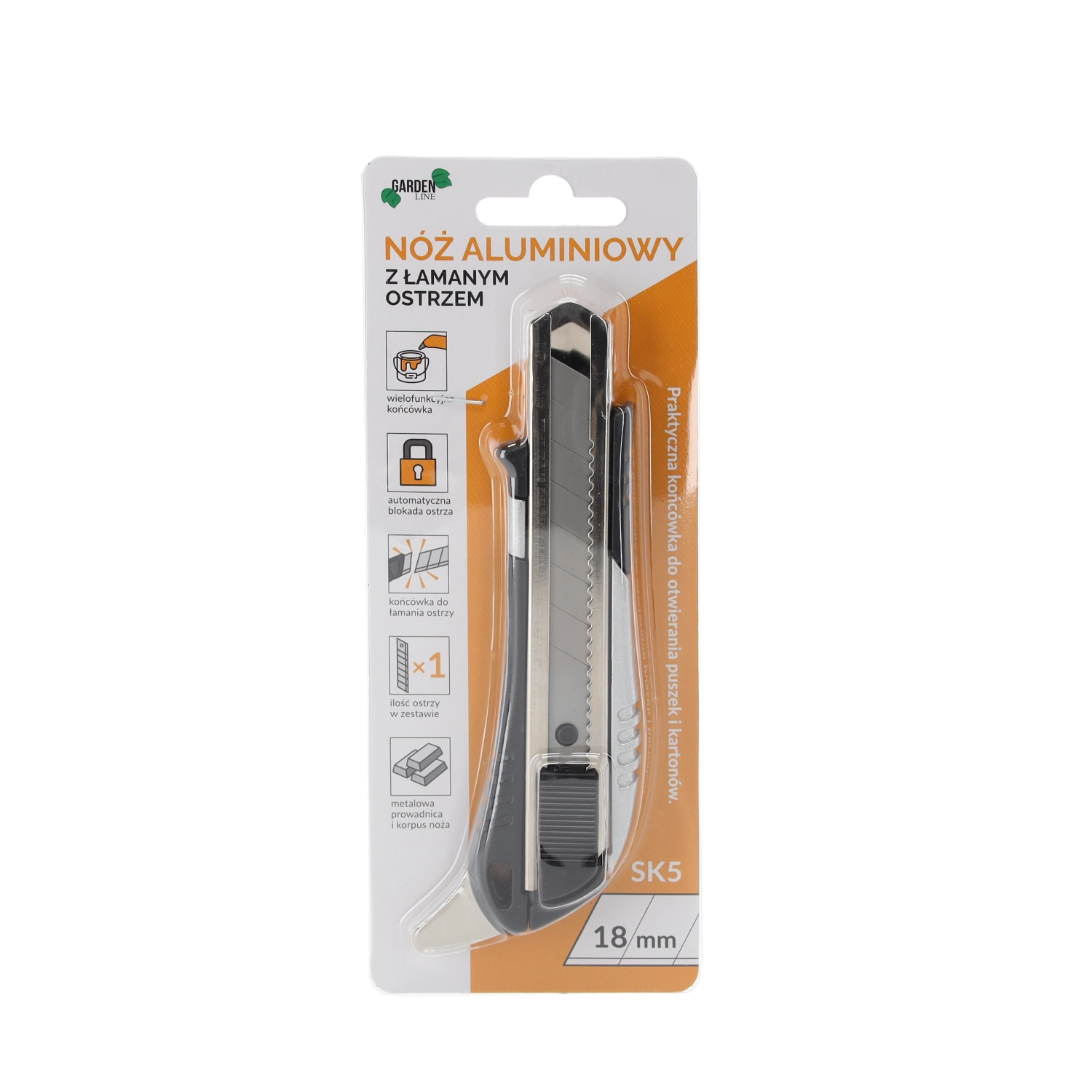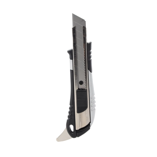 Praktický zalamovací nůž s hliníkovým tělem a čepelí 18 mm je ideální pro přesné řezy v dílně i doma. Nabízí automatickou blokaci čepele pro bezpečnou práci, pevné hliníkové tělo s pohodlným ABS úchopem a navíc integrovaný otvírák plechovek. Odolná čepel ze stali SK5 je osazena z výroby a připravena k použití.
